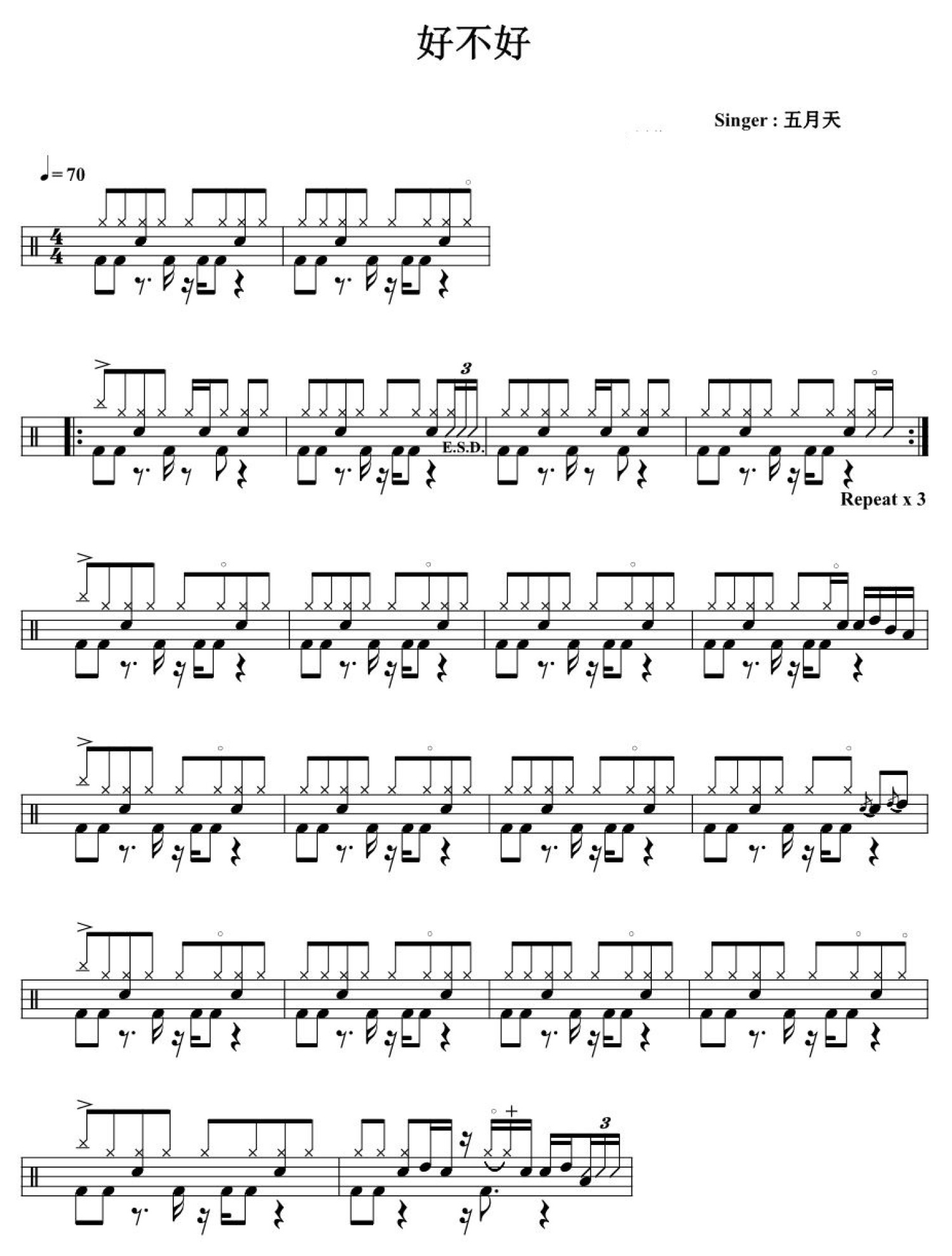 好不好鼓谱 - 五月天 - 架子鼓谱