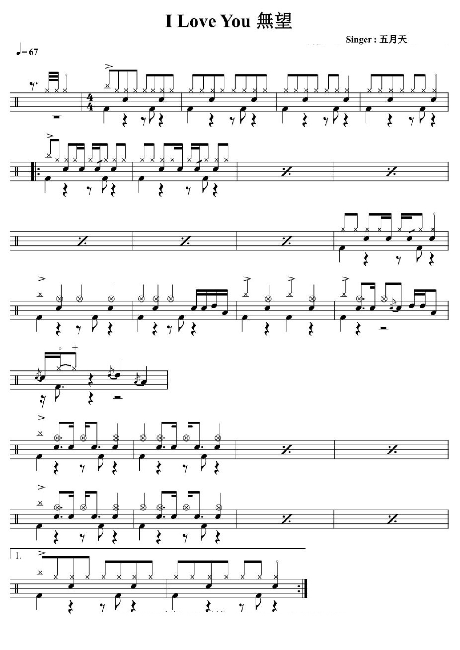 曲谱介绍: I Love You无望(架子鼓谱)-五月天