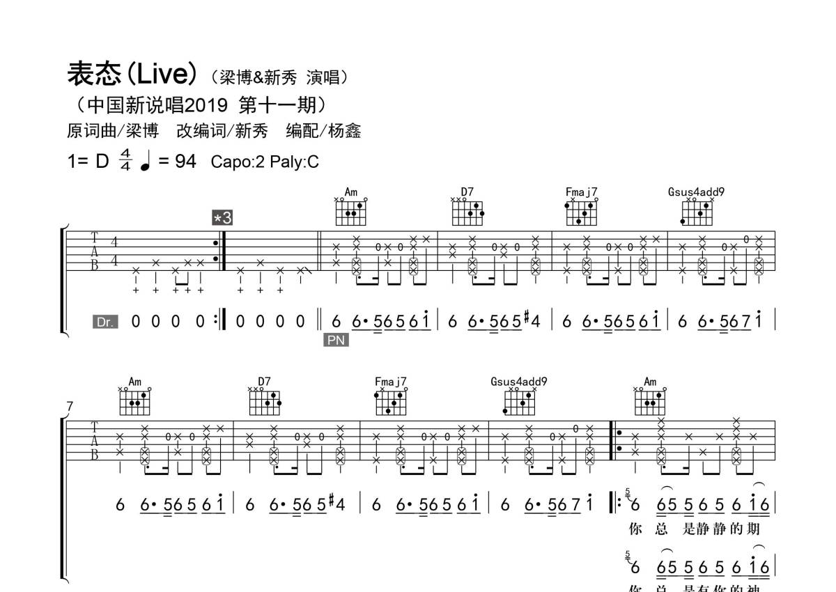 • 表态吉他谱 - 梁博/新秀 - C调吉他弹唱谱 - 精编弹唱第1张