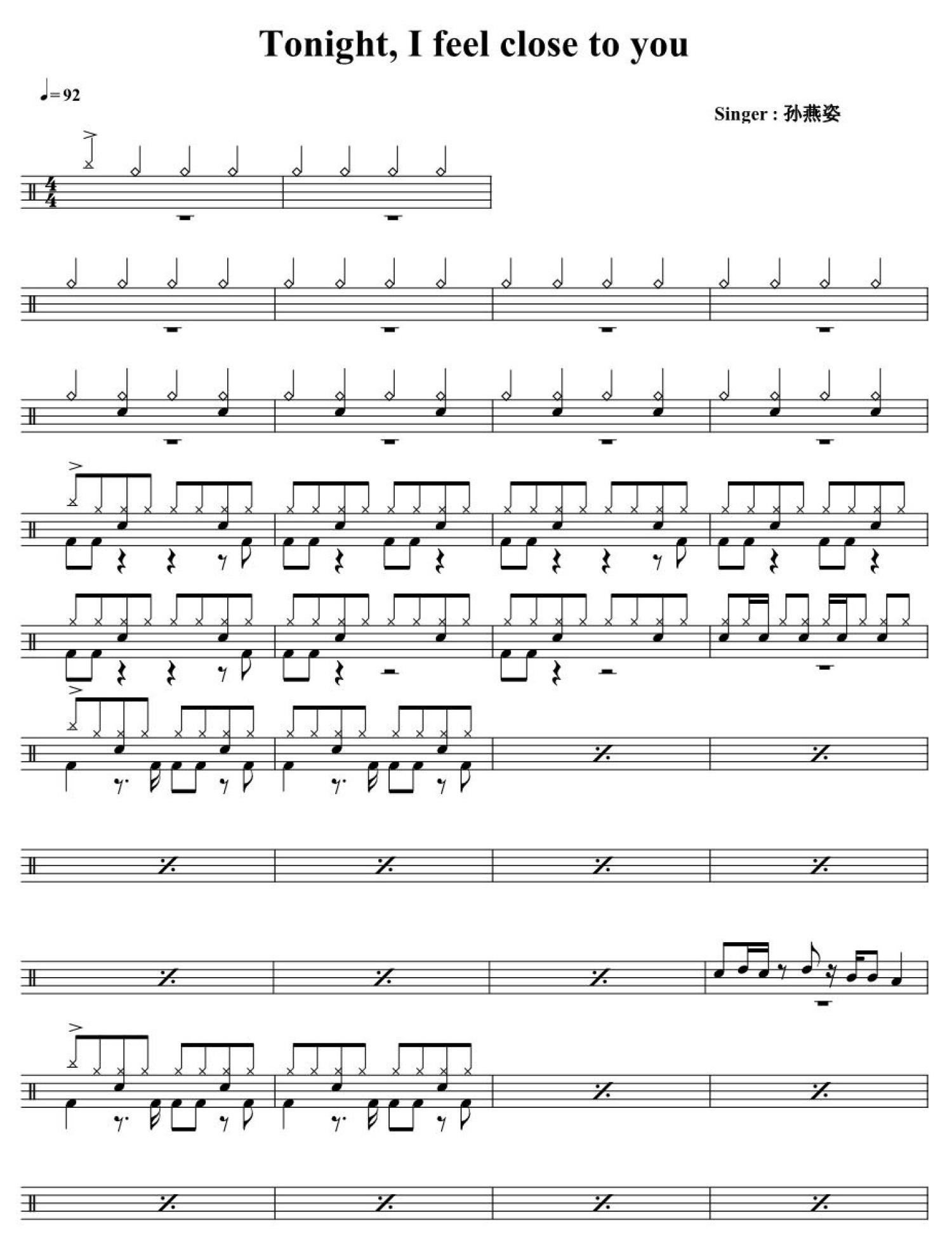 Tonight I feel close to you鼓谱 - 孙燕姿 - 架子鼓谱