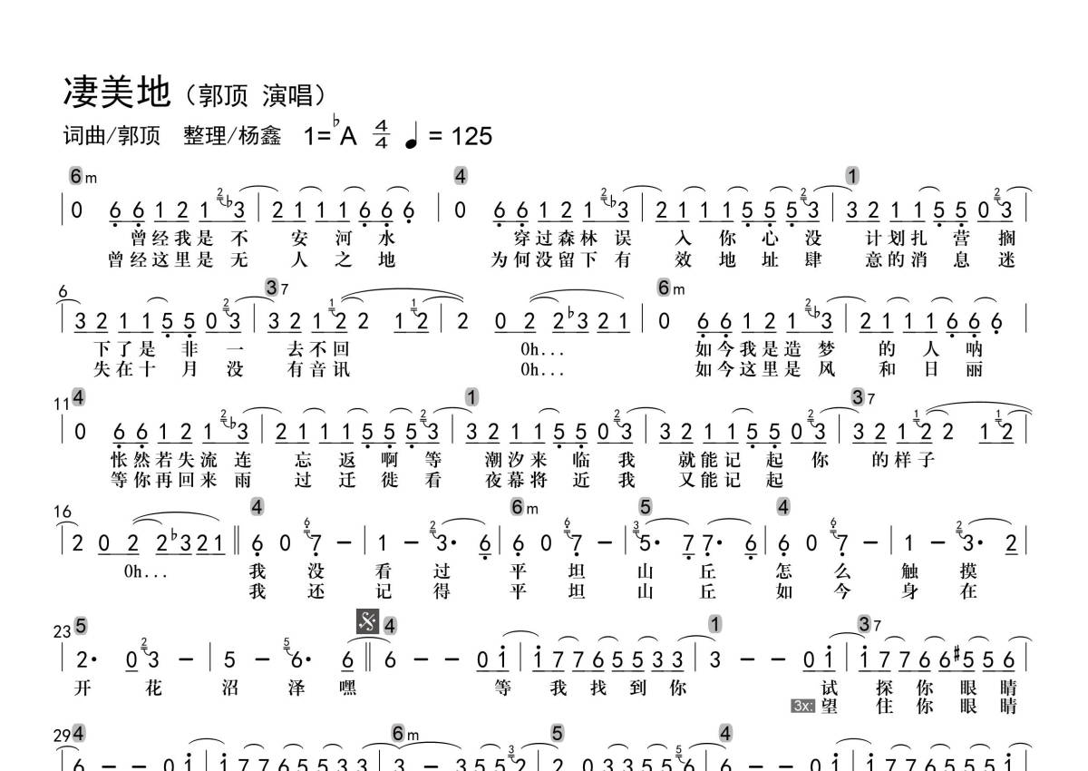 • 凄美地简谱 - 郭顶 - 级数和弦标记第1张