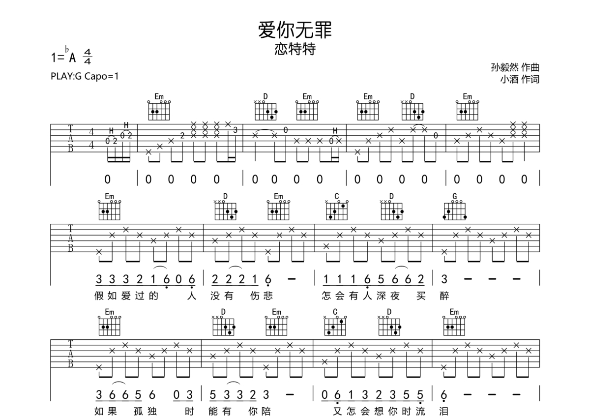 • 爱你无罪吉他谱 - 恋特特 - G调吉他弹唱谱第1张
