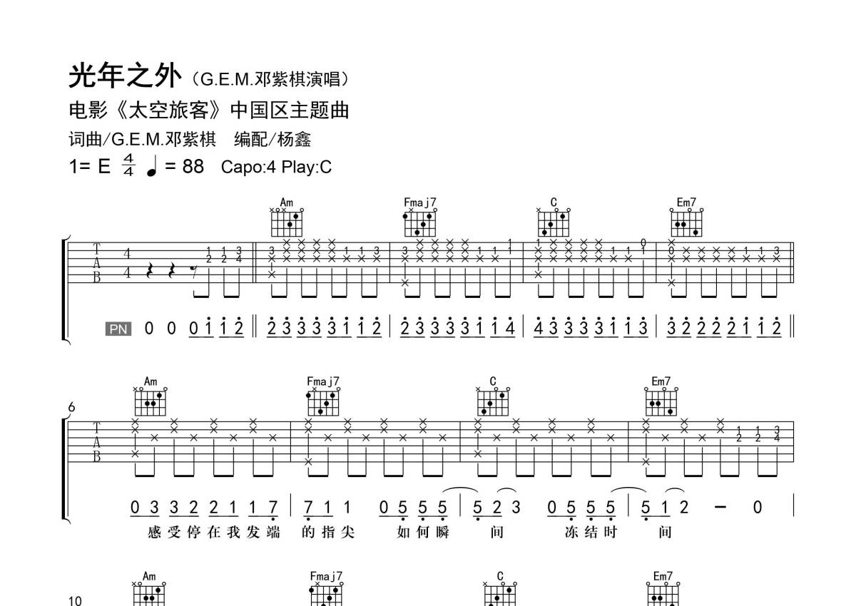 • 光年之外吉他谱 - G.E.M.邓紫棋 - C调吉他弹唱谱第1张