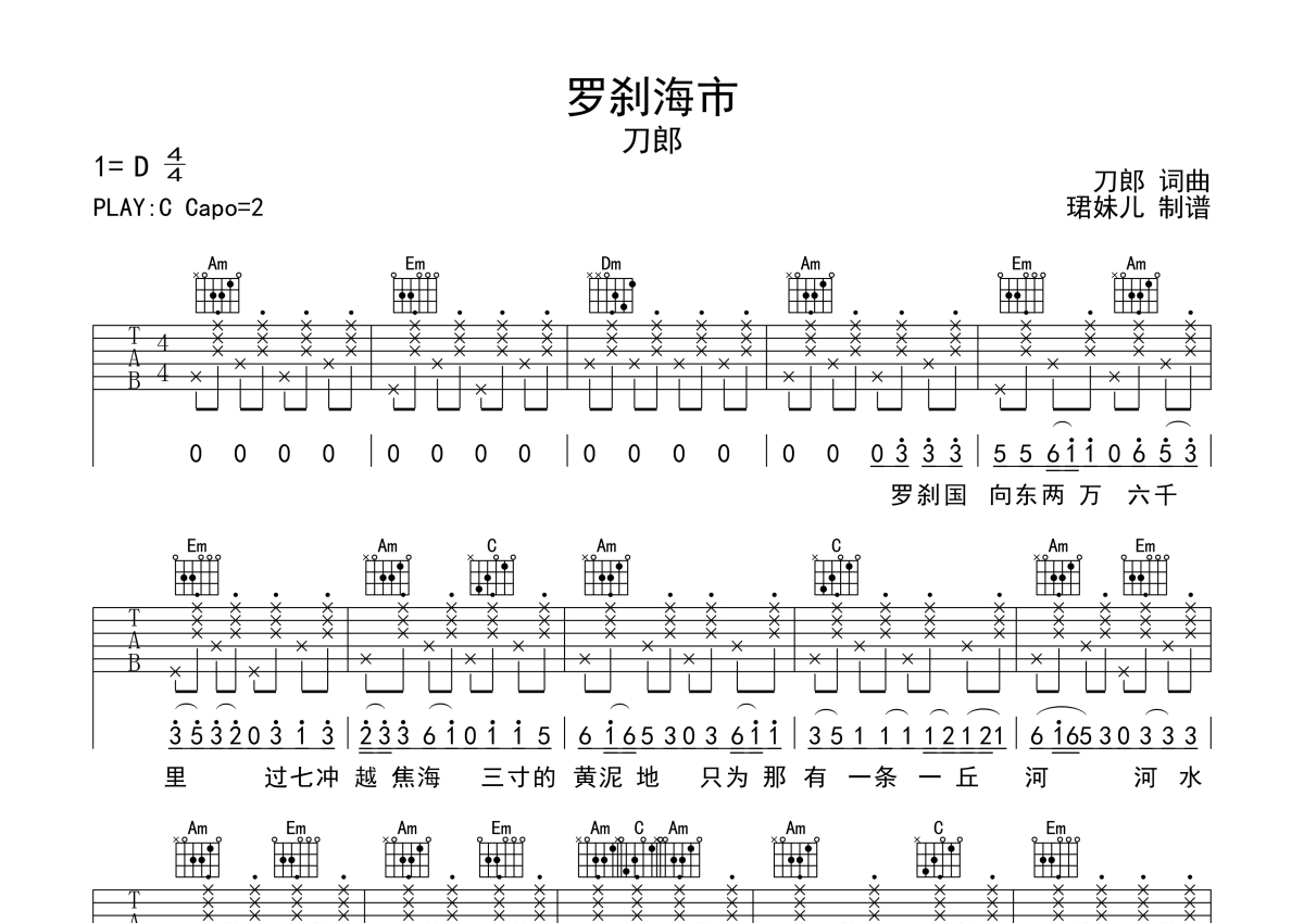 • 罗刹海市吉他谱 - 刀郎 - C调吉他弹唱谱第1张