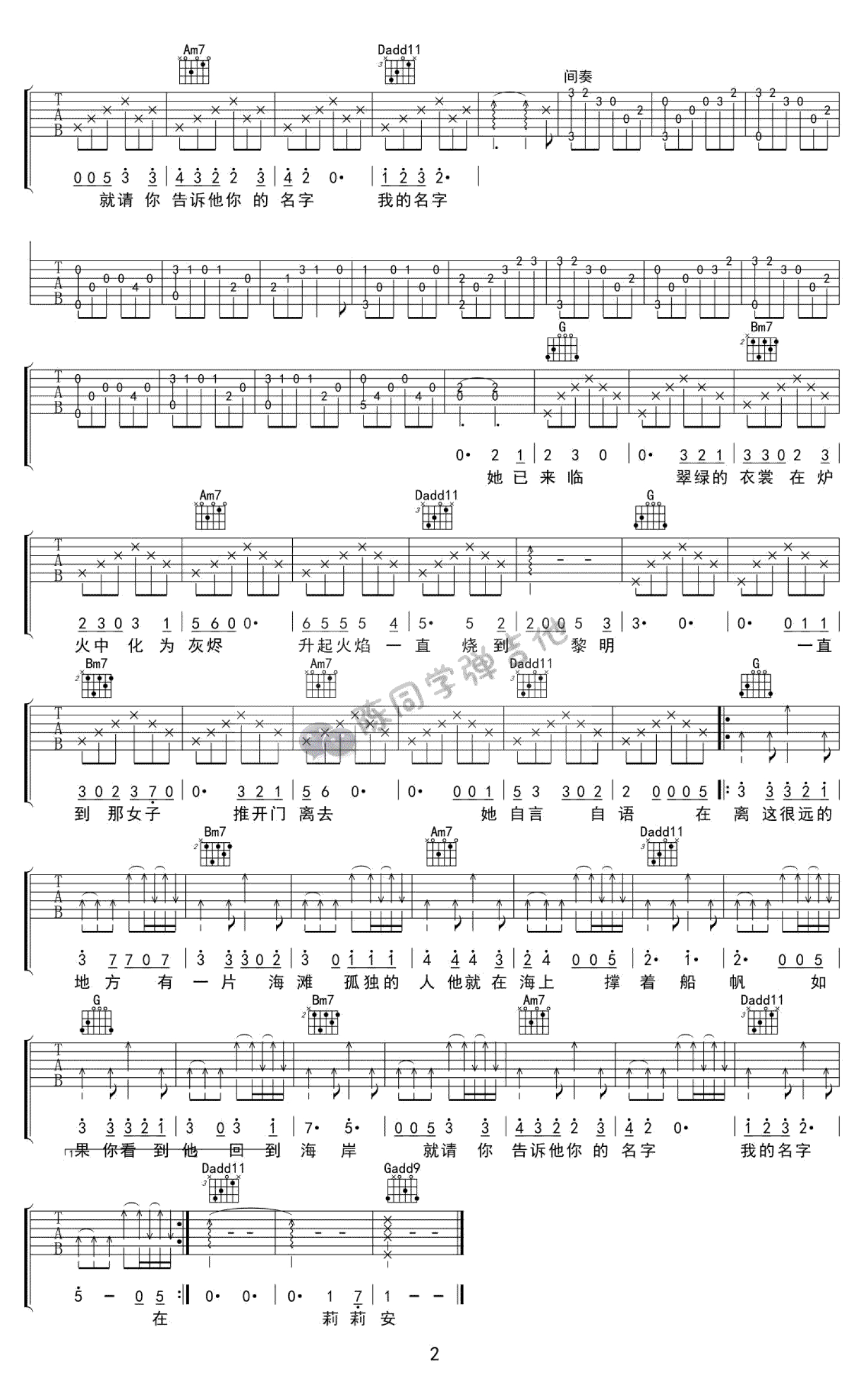 曲谱介绍: 莉莉安吉他谱,宋冬野的代表民谣作品,G调指法,高清图片谱。老师的话:整首歌只有4个和弦进行,跟宋冬野的其他歌一样,曲式都很简单,弹奏起来不难,难的是唱,要唱出原曲的味道一点也不简单!需要注意的是吉他的节奏得慢,我在弹唱的时候速度有些快了,失去了一些味道。