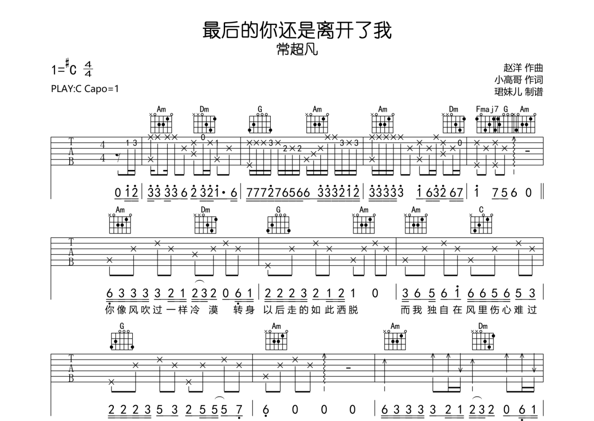 • 最后的你还是离开了我吉他谱 - 常超凡 - C调吉他弹唱谱第1张