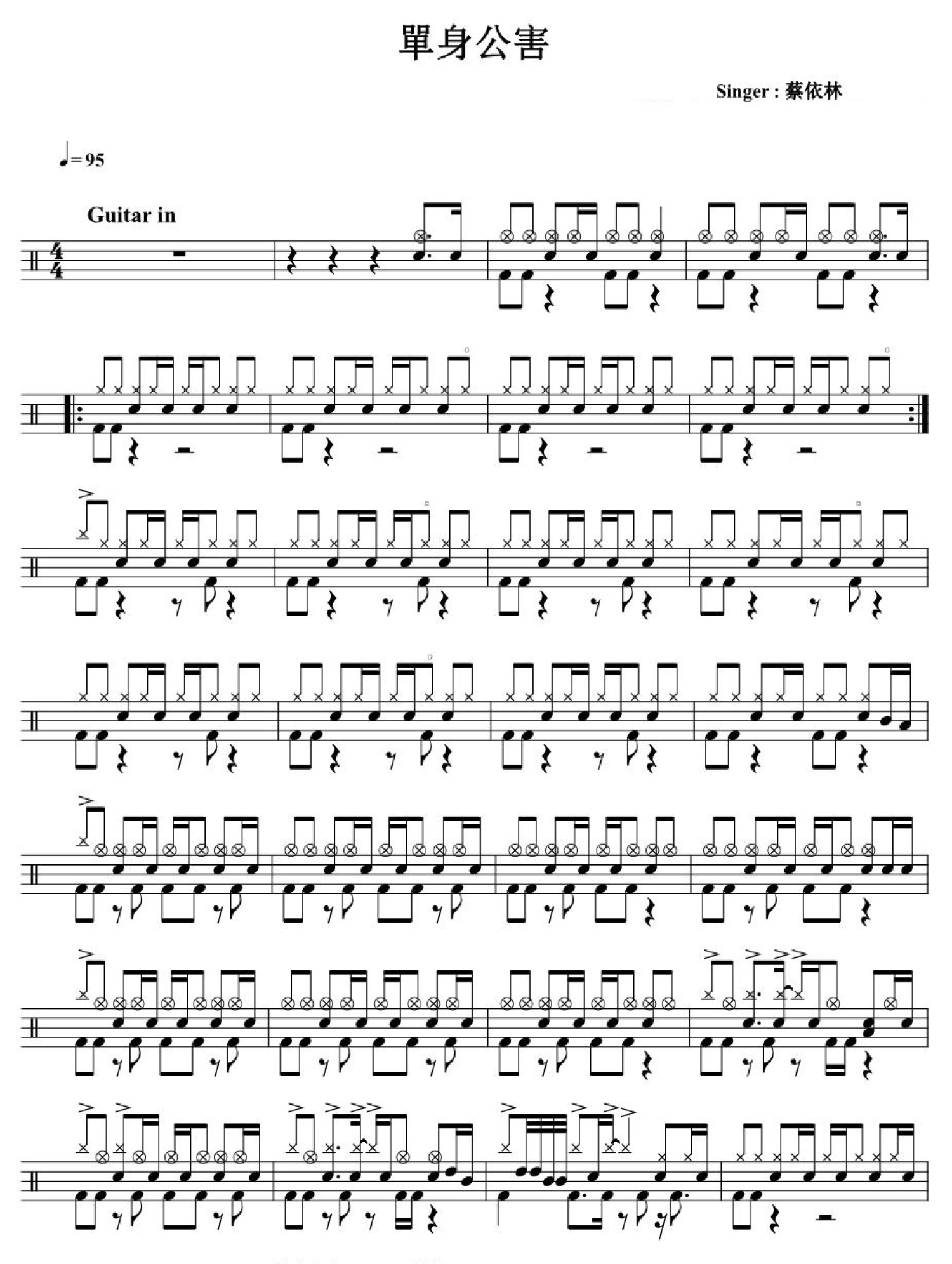 曲谱介绍: 单身公害(架子鼓谱)-蔡依林
