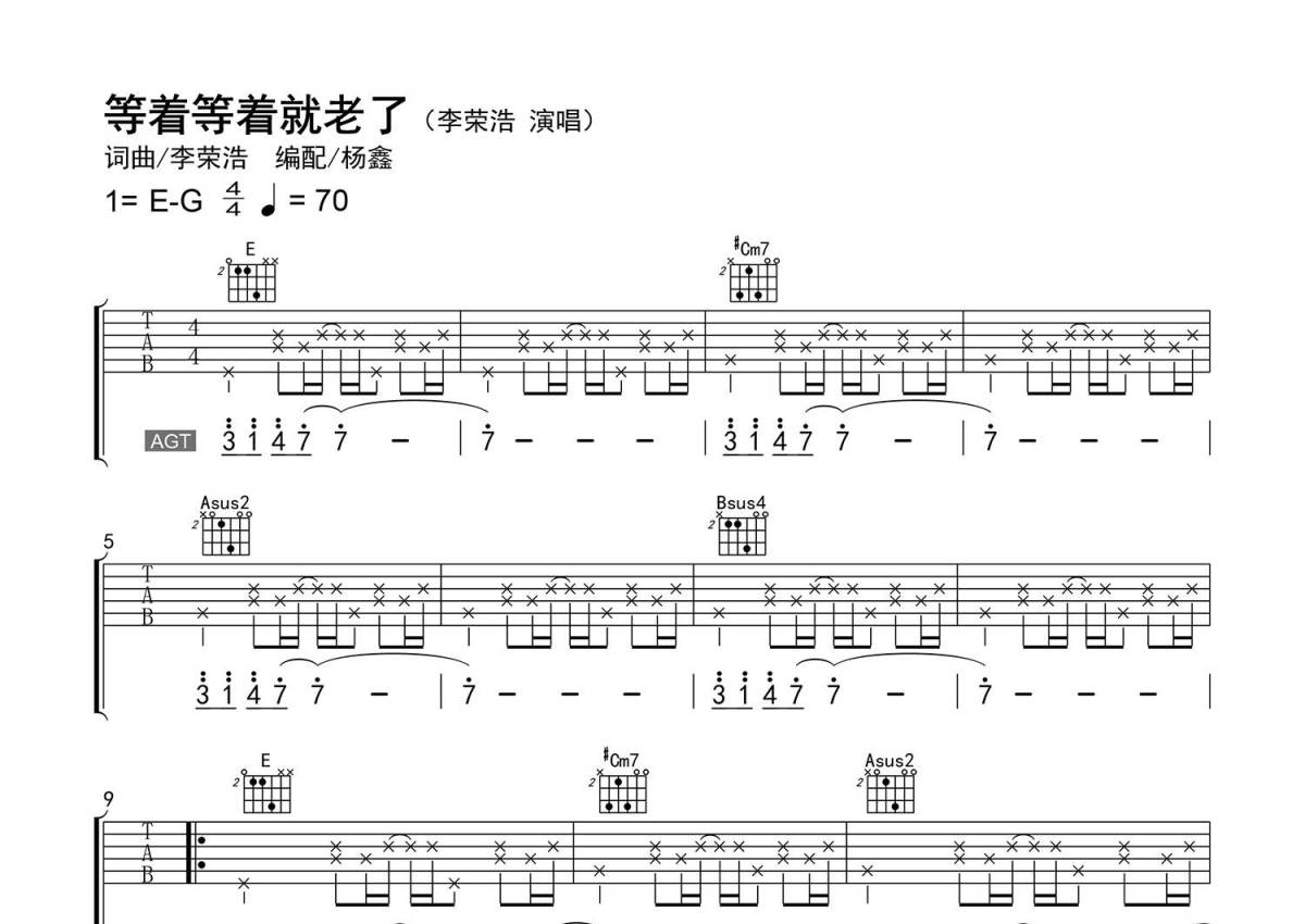 • 等着等着就老了吉他谱 - 李荣浩 - E调吉他弹唱谱 - 精编弹唱第1张
