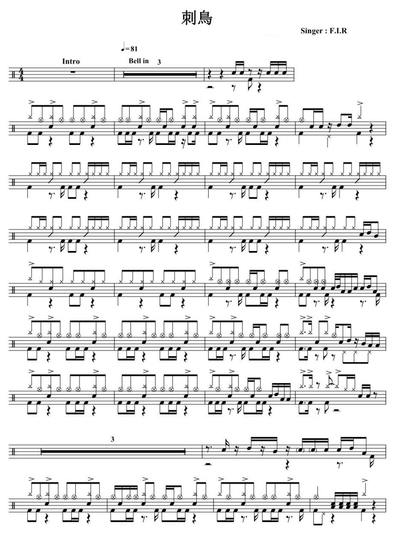 曲谱介绍: 刺鸟(架子鼓谱)-F.I.R