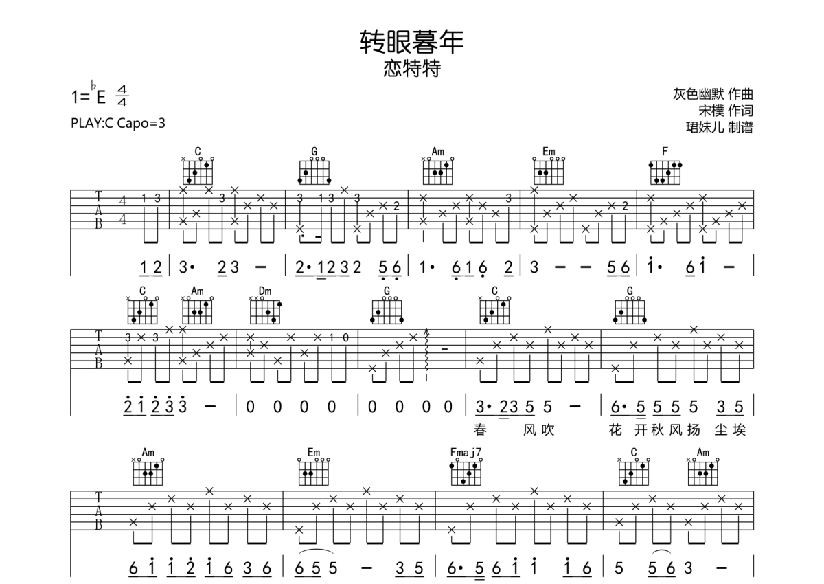 • 转眼暮年吉他谱 - 恋特特 - C调吉他弹唱谱第1张