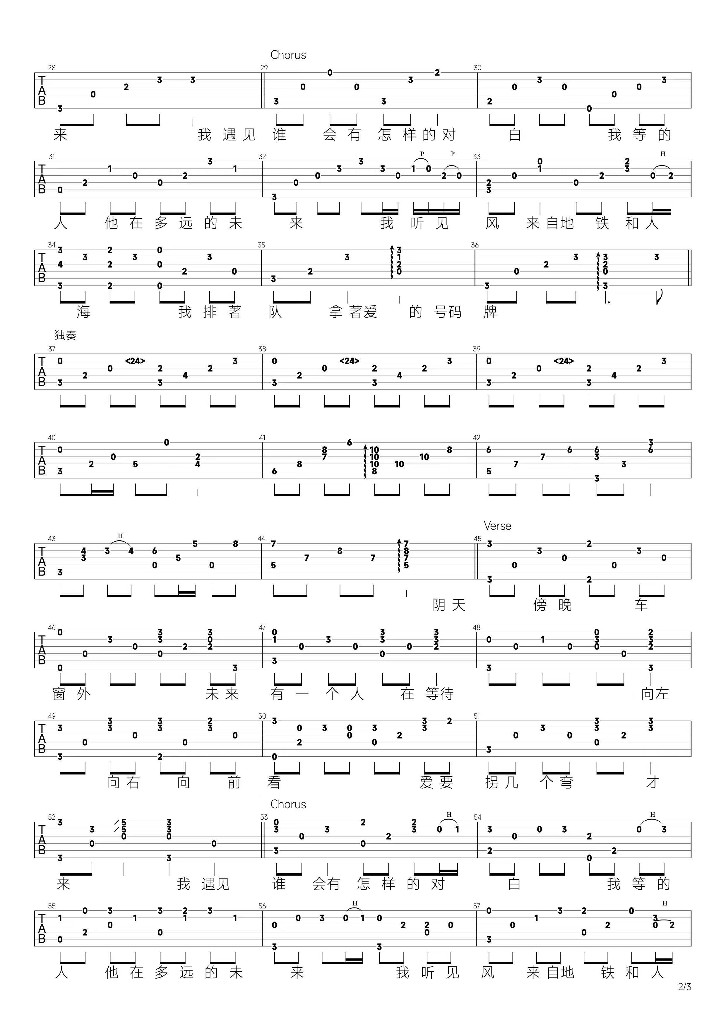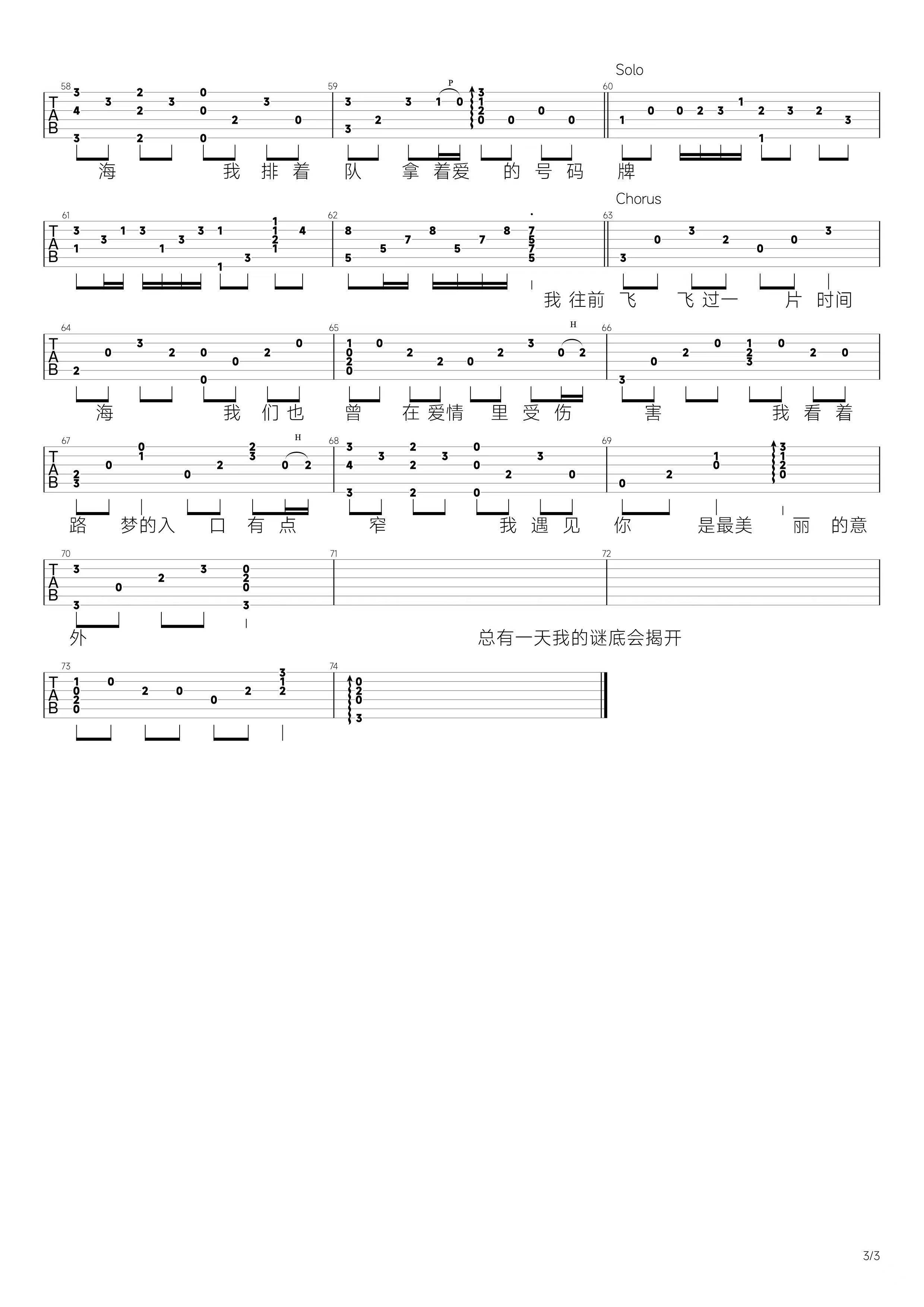 曲谱介绍: 孙燕姿《遇见》吉他弹唱谱,共有3张高清图谱。