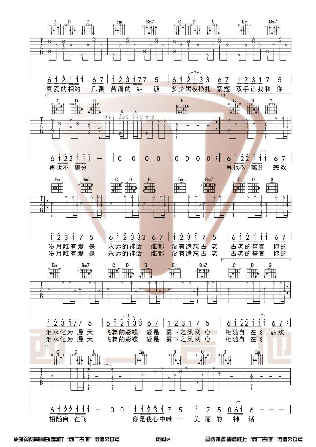 曲谱介绍: 山山吉他《美丽的神话》吉他弹唱谱,共有2张高清图谱,免翻页排版设计。