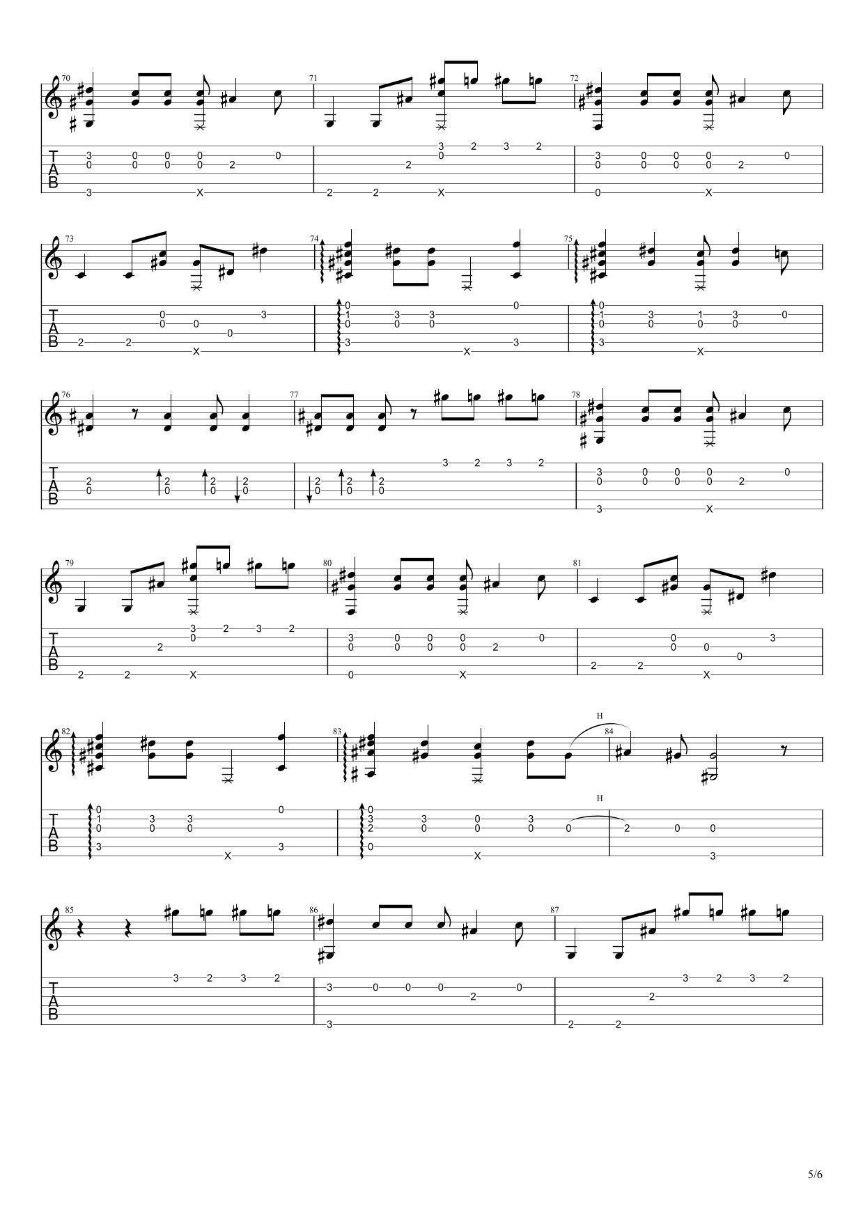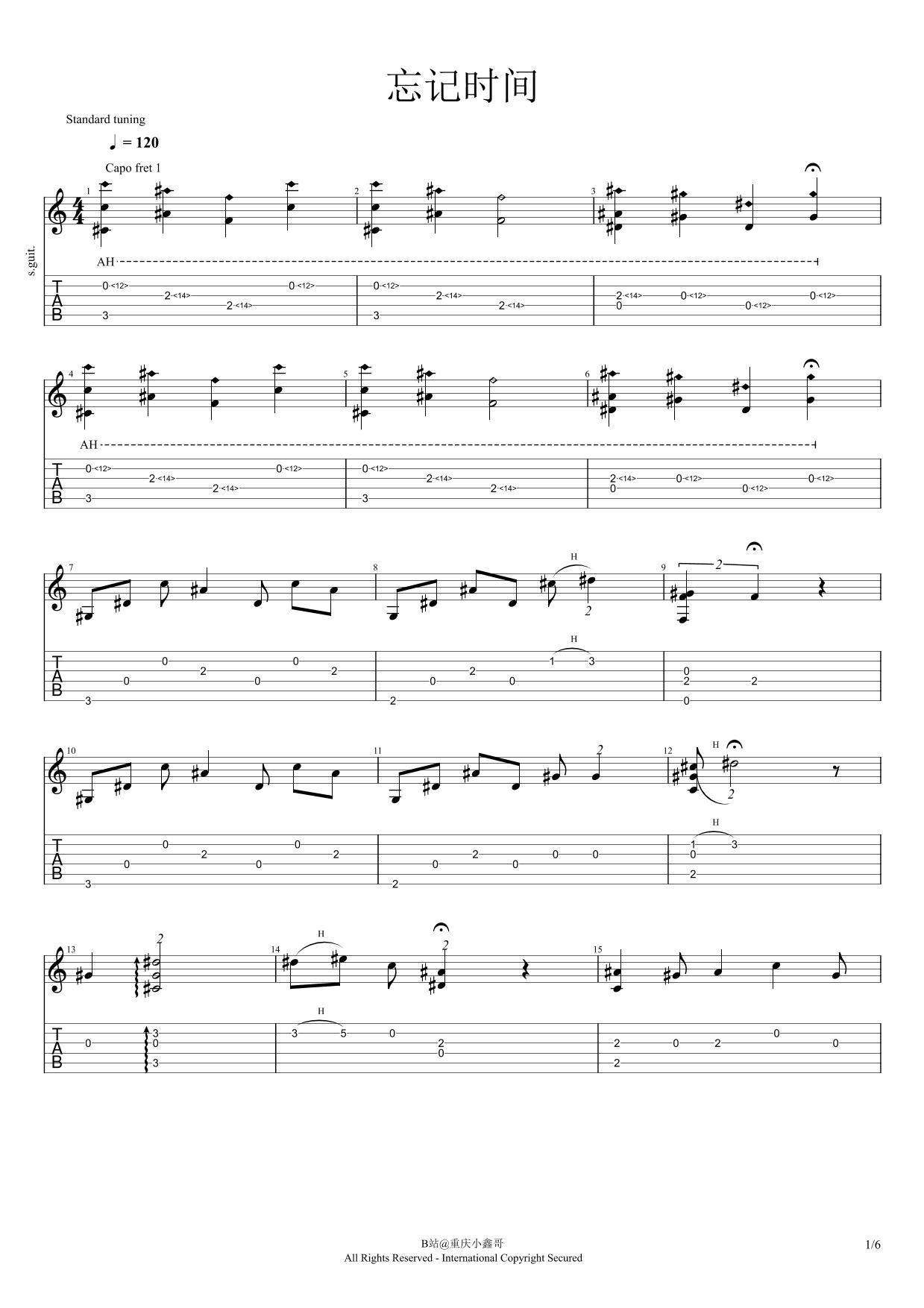 曲谱介绍: 小鑫哥《忘记时间》吉他独奏谱,共有6张高清图谱。