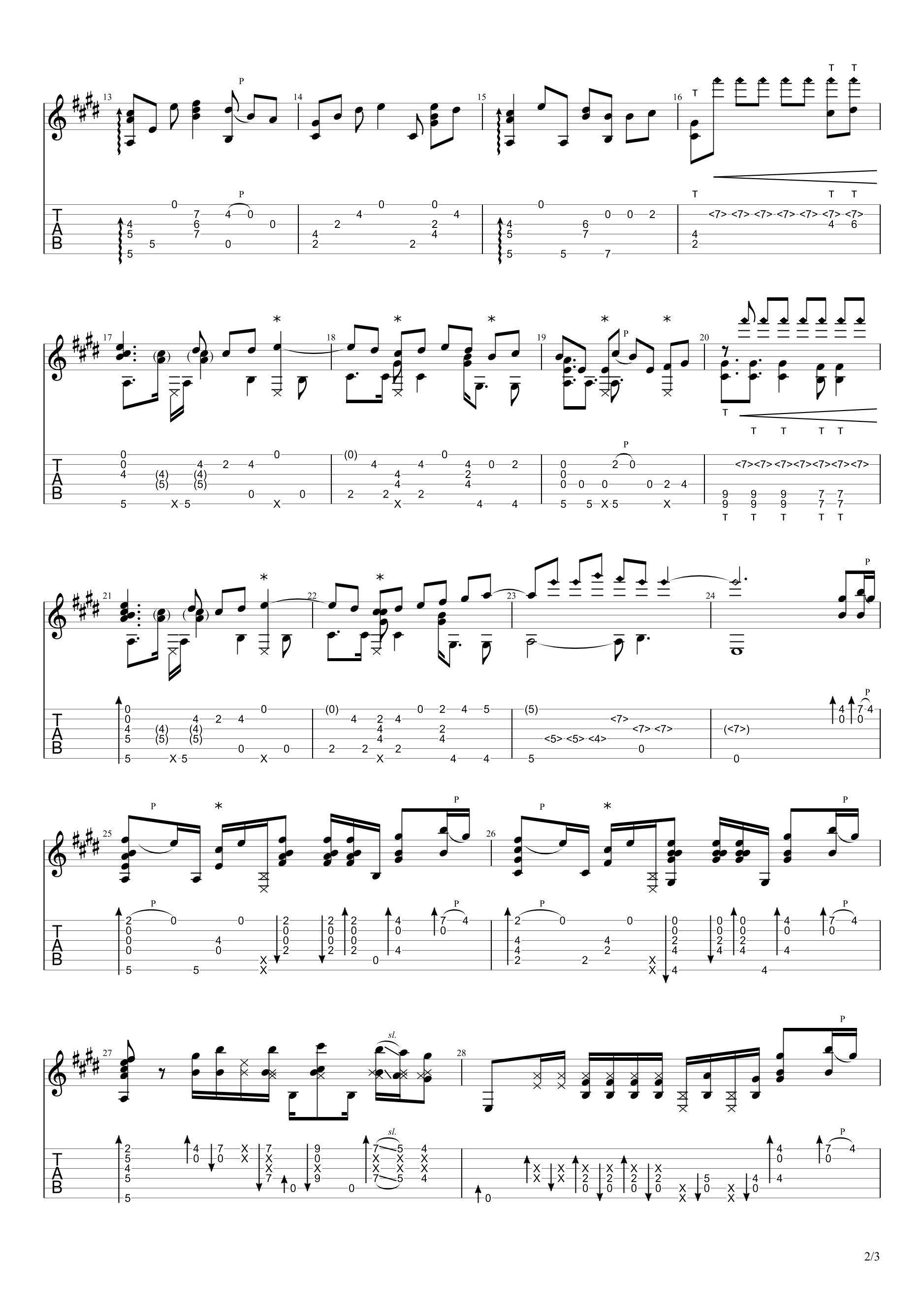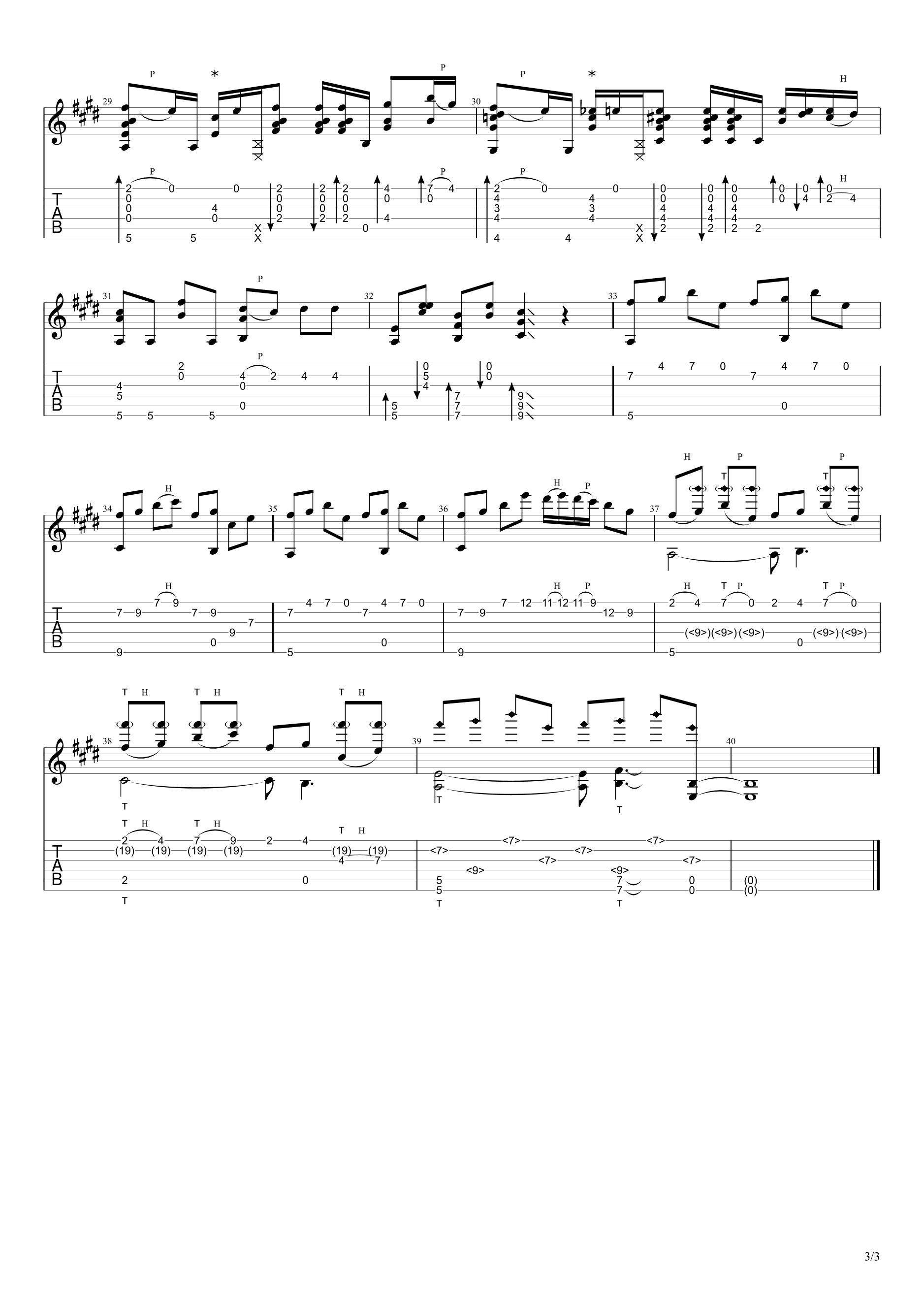 曲谱介绍: 神奇无比小炒肉《打上花火》吉他独奏谱,共有3张高清图谱。