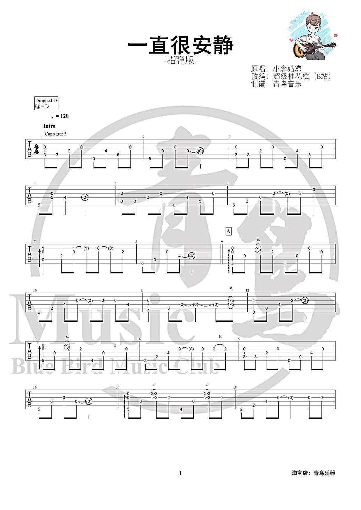 曲谱介绍: 超级桂花糕《一直很安静》吉他独奏谱,共有5张高清图谱。