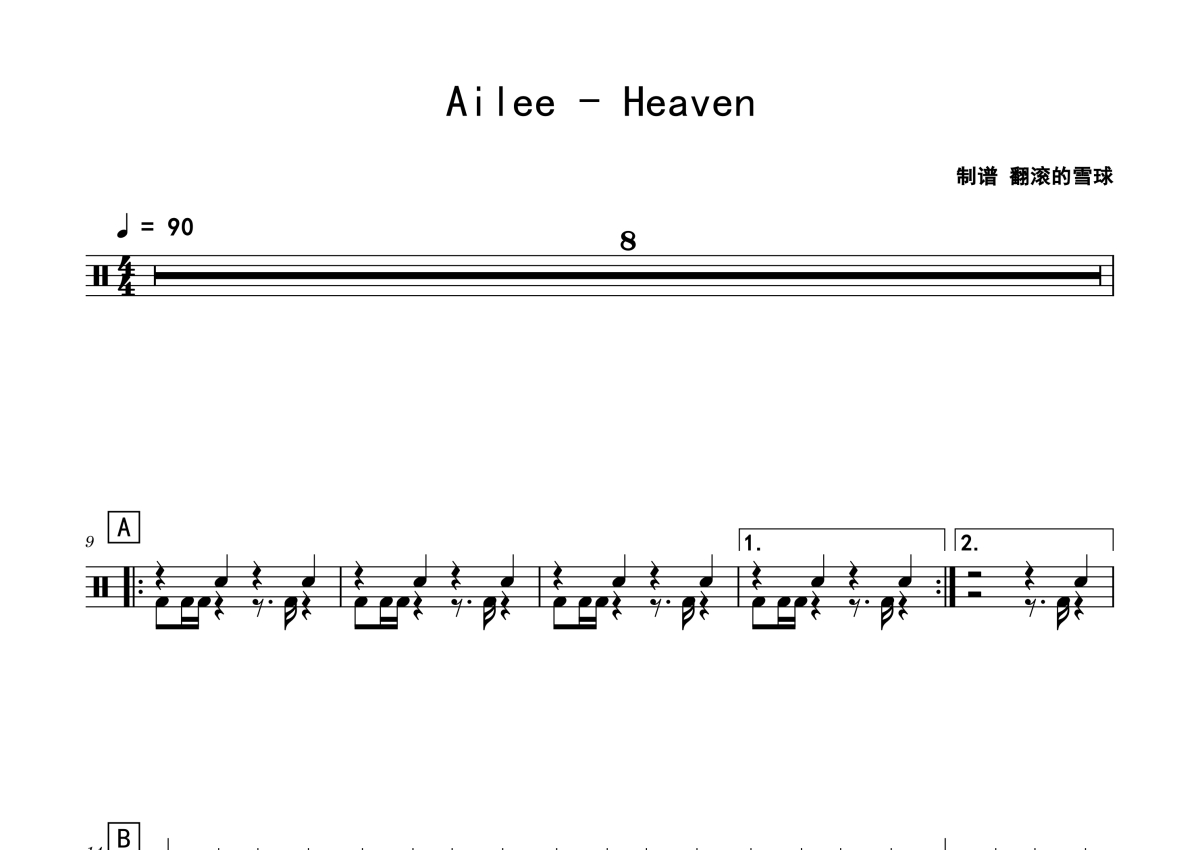 曲谱介绍: Ailee《Heaven》架子鼓谱,老虎不说谎编配出品,共有2张高清图谱,免翻页排版设计。