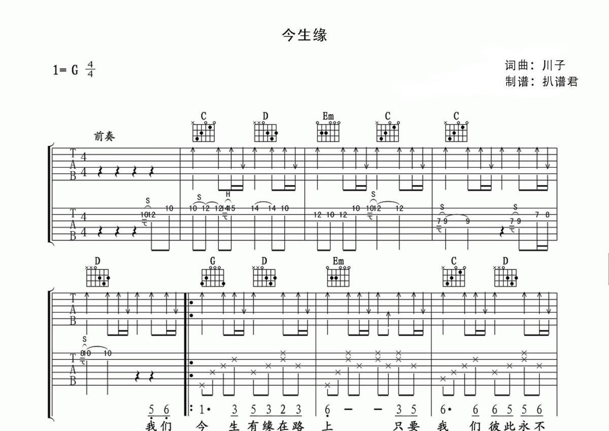 • 今生缘吉他谱 - 川子 - G调吉他弹唱谱第1张