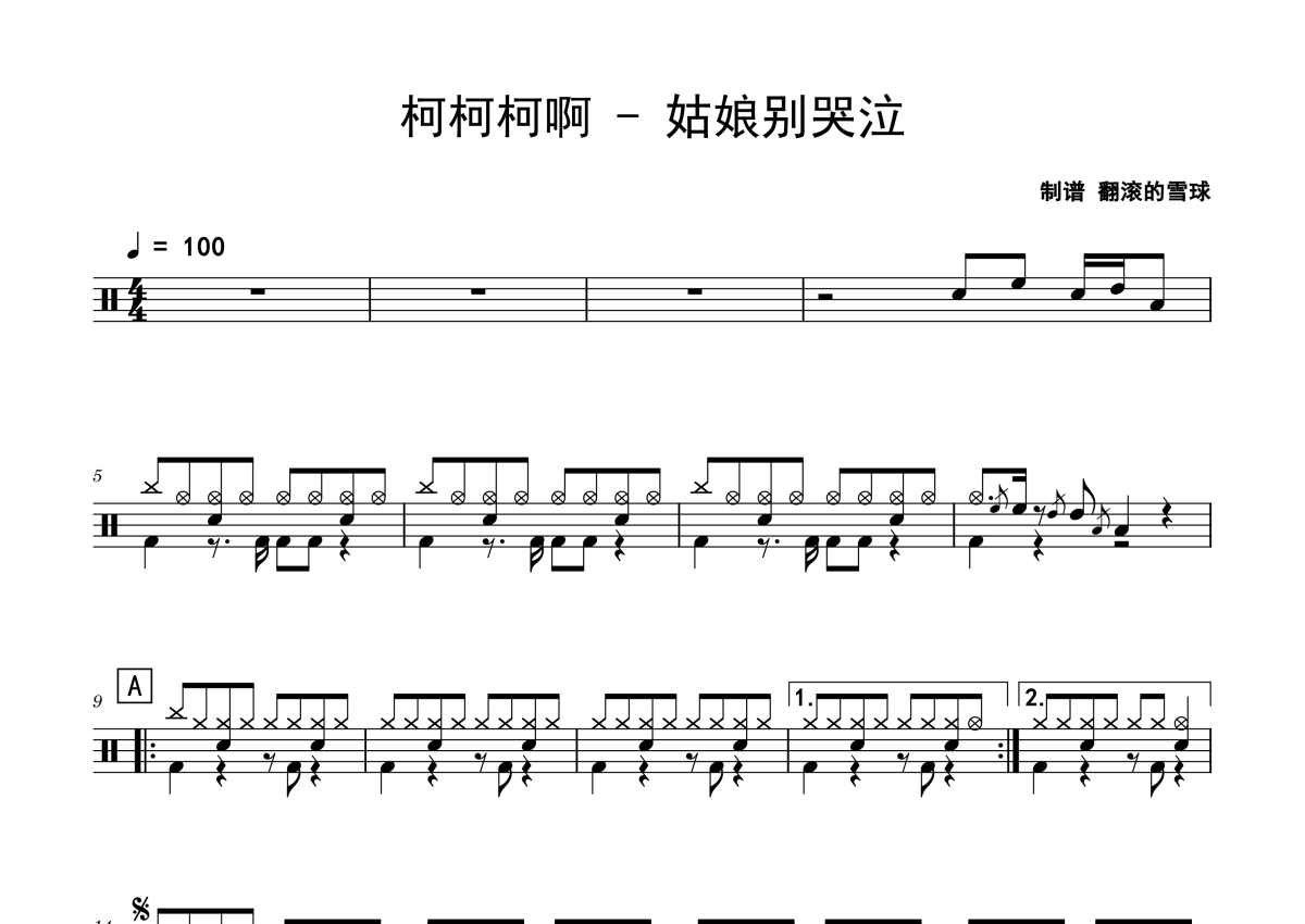 • 姑娘别哭泣鼓谱 - 柯柯柯啊 - 架子鼓谱第1张