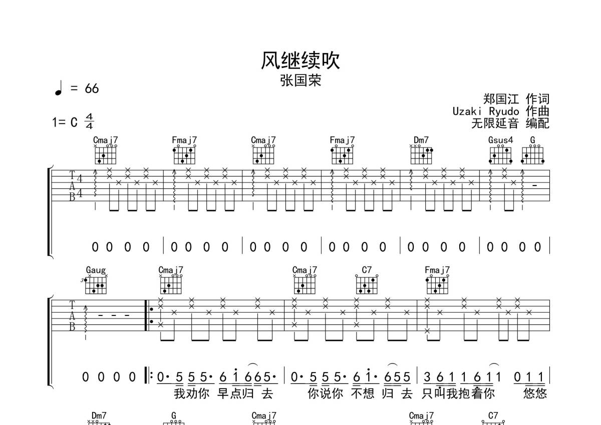 • 风继续吹吉他谱 - 张国荣 - C调吉他弹唱谱第1张