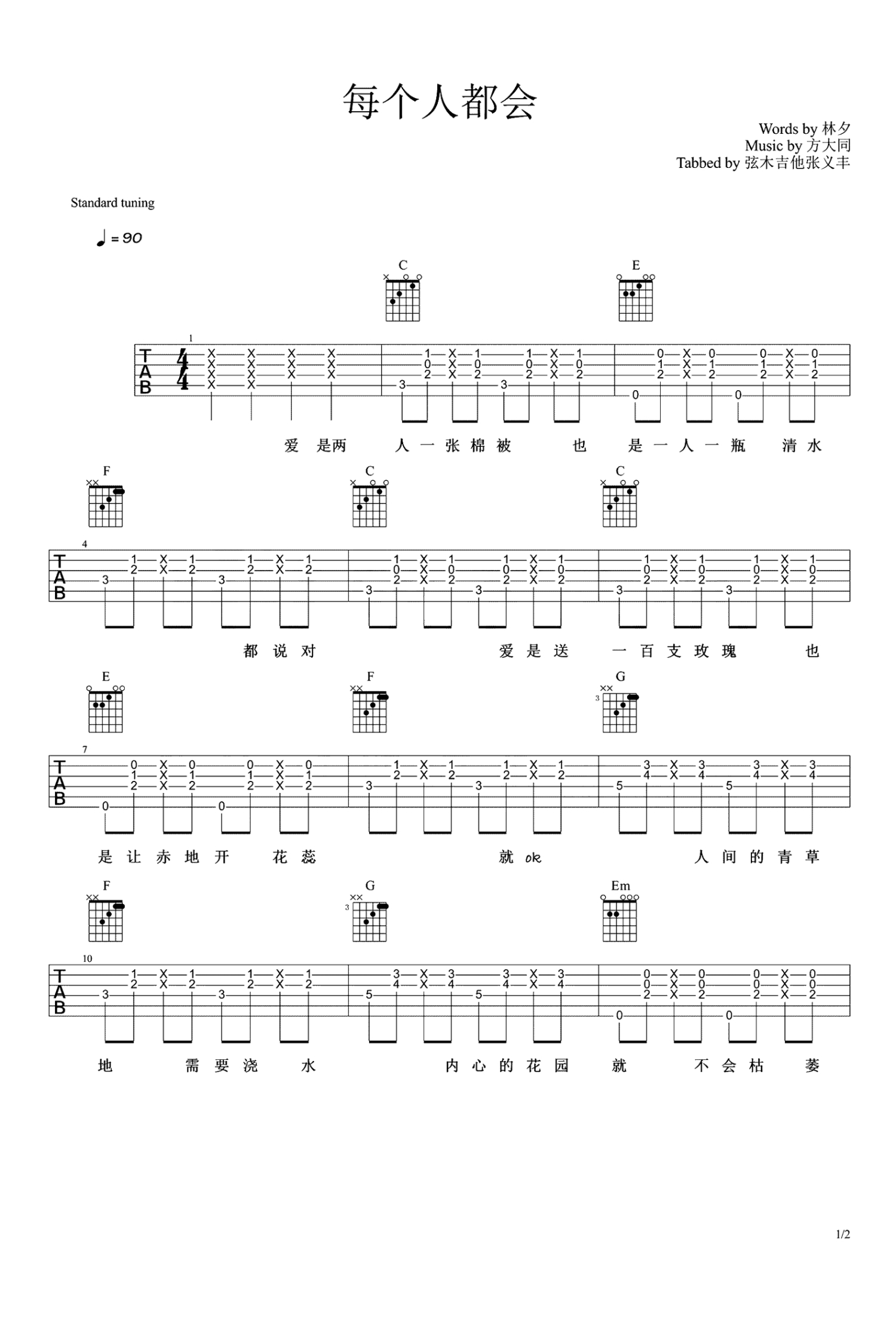 每个人都会吉他谱 - 方大同 - C调吉他弹唱谱