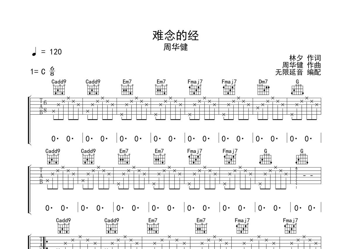 • 难念的经吉他谱 - 周华健 - C调吉他弹唱谱第1张