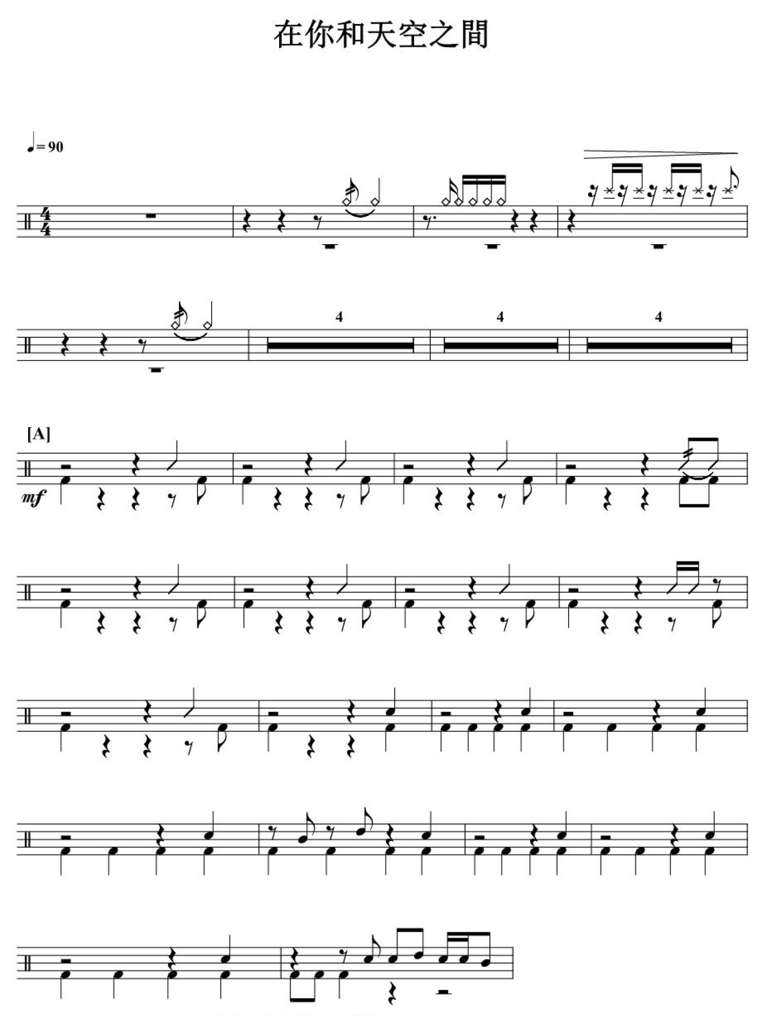 曲谱介绍: 在你和天空之间(架子鼓谱)