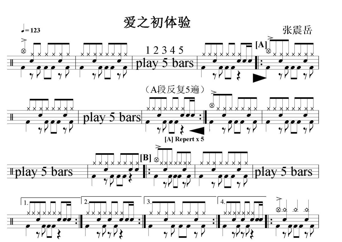 • 爱之初体验鼓谱 - 张震岳 - 架子鼓谱第1张