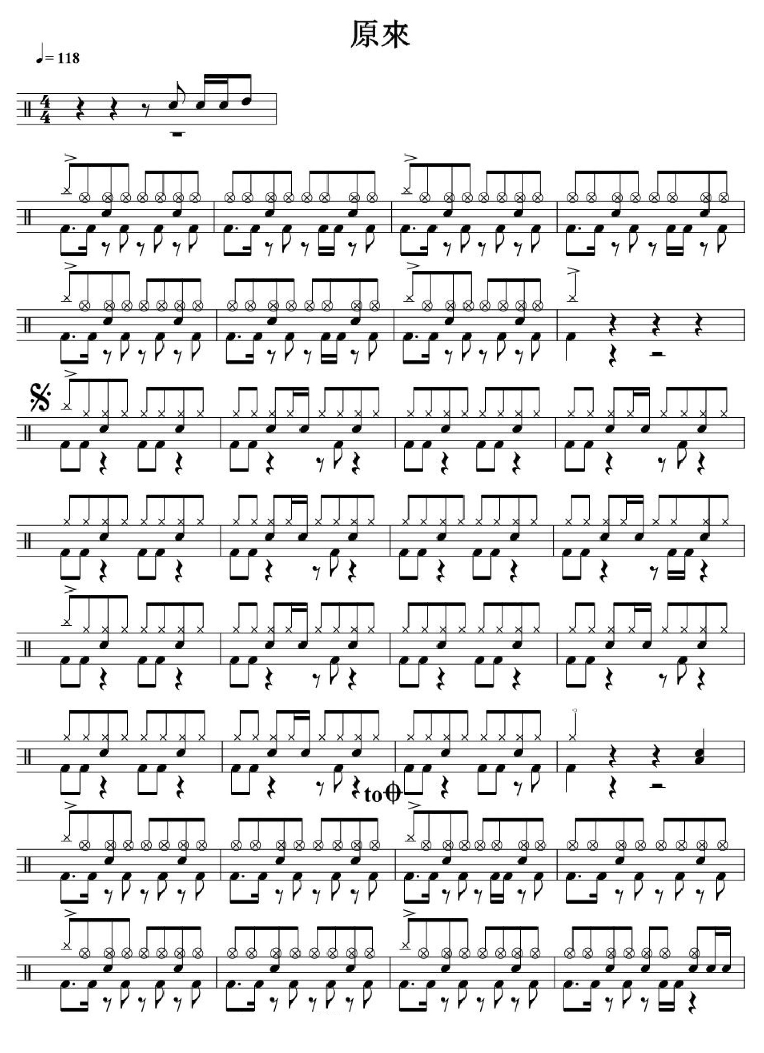 曲谱介绍: 原来(架子鼓谱)