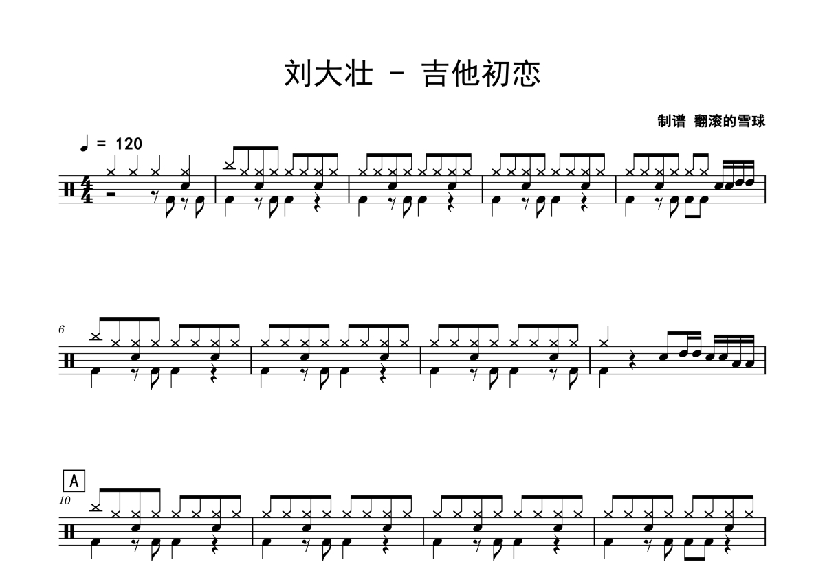 吉他初恋鼓谱 - 刘大壮 - 架子鼓谱