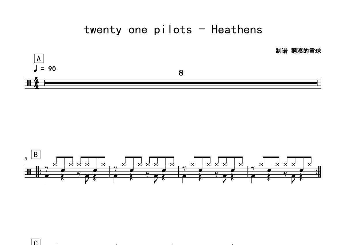 • Heathens鼓谱 - Twenty One Pilots - 架子鼓谱第1张