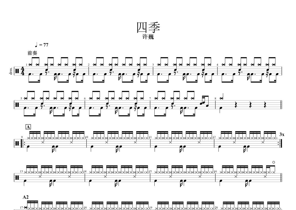 • 四季鼓谱 - 许巍 - 架子鼓谱第1张