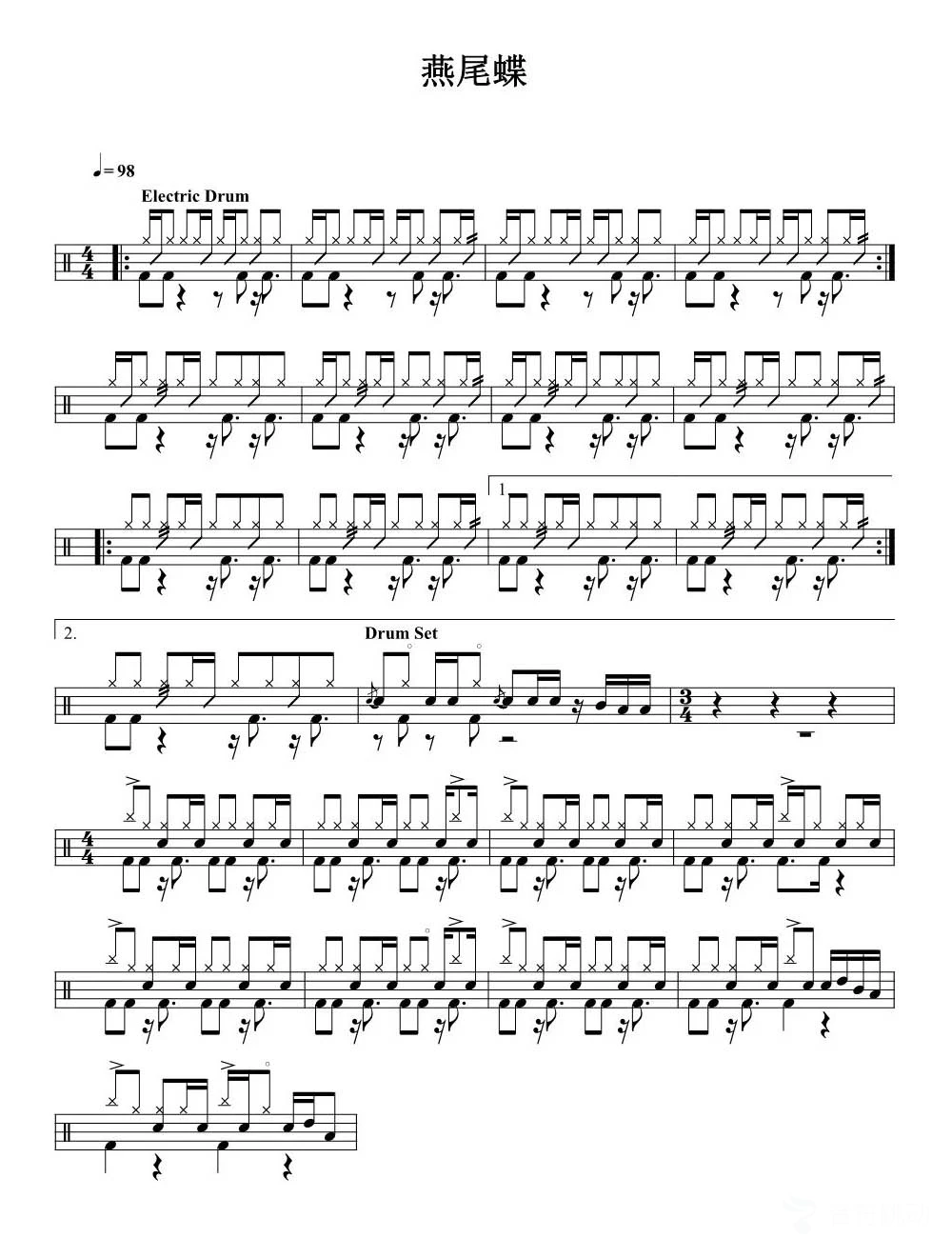 曲谱介绍: 燕尾蝶(架子鼓谱)