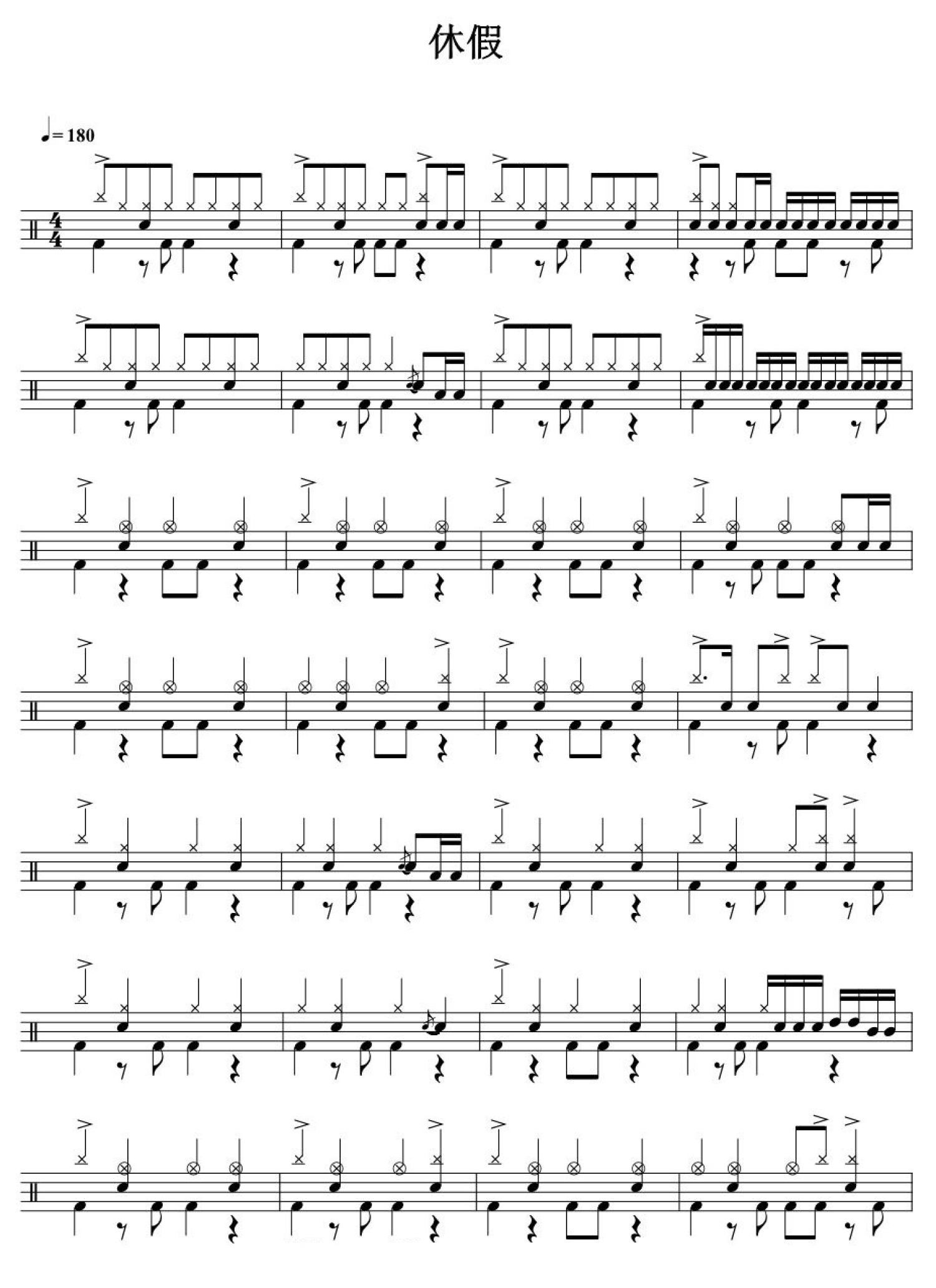 休假鼓谱 - 张含韵 - 架子鼓谱