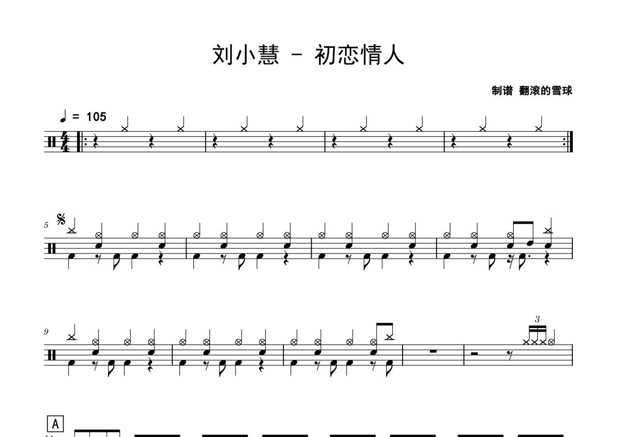 • 初恋情人鼓谱 - 刘小慧 - 架子鼓谱第1张
