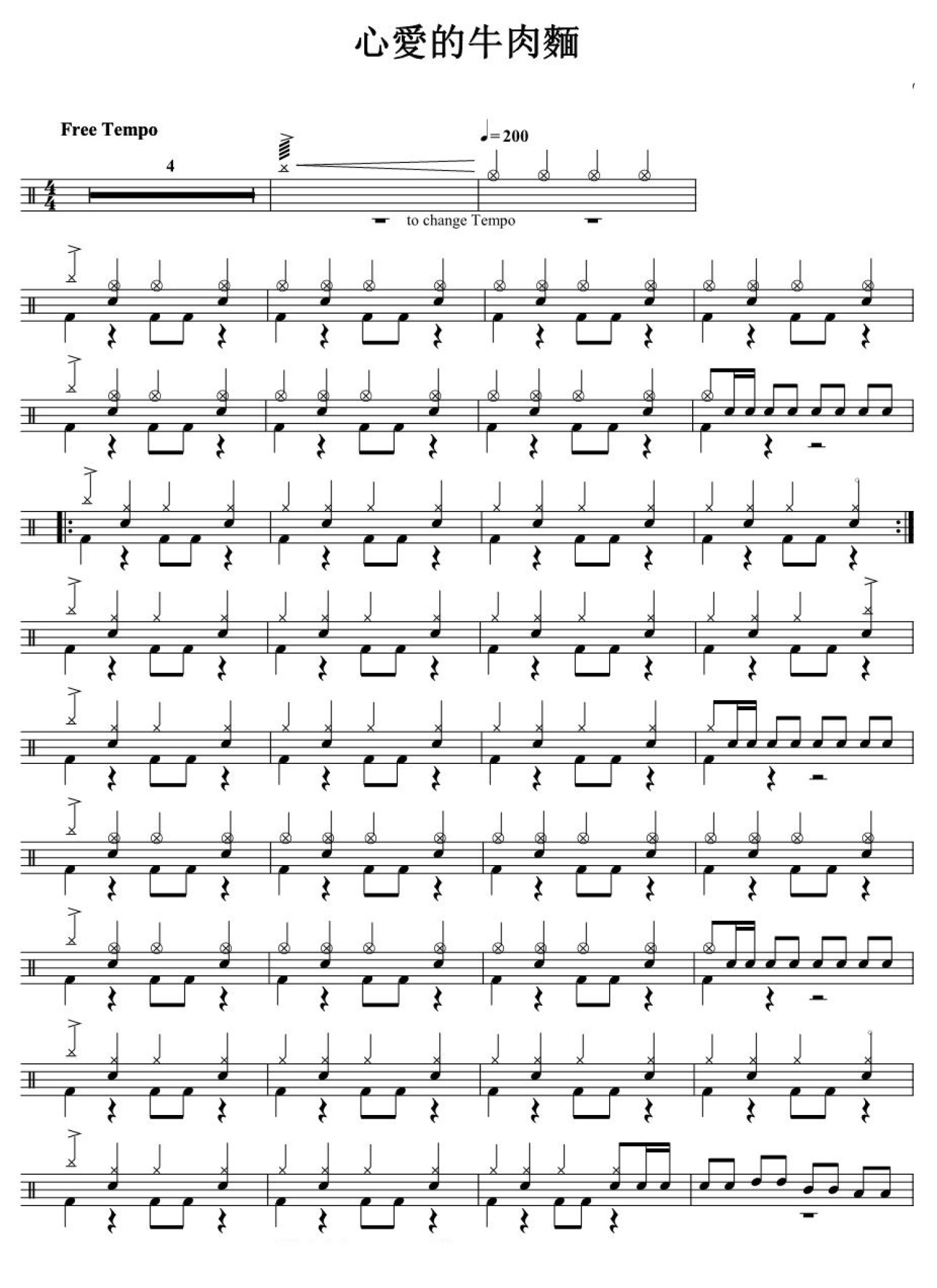 曲谱介绍: 心爱的牛肉面(架子鼓谱)
