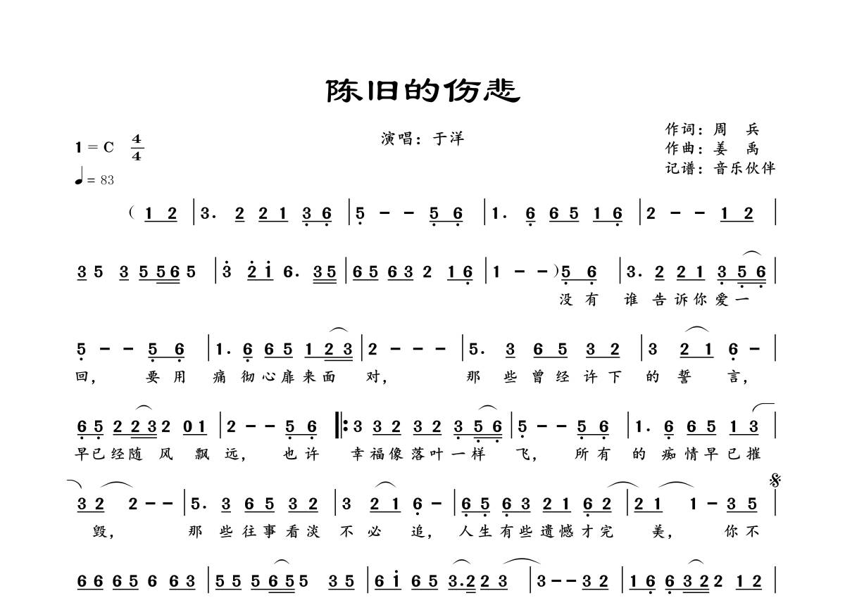 曲谱介绍: 于洋《陈旧的伤悲》,音乐伙伴编配出品,共有1张高清图谱,免翻页排版设计。