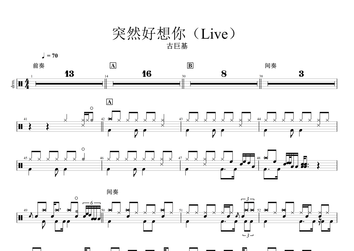 突然好想你鼓谱 - 古巨基 - 架子鼓谱 - (Live)