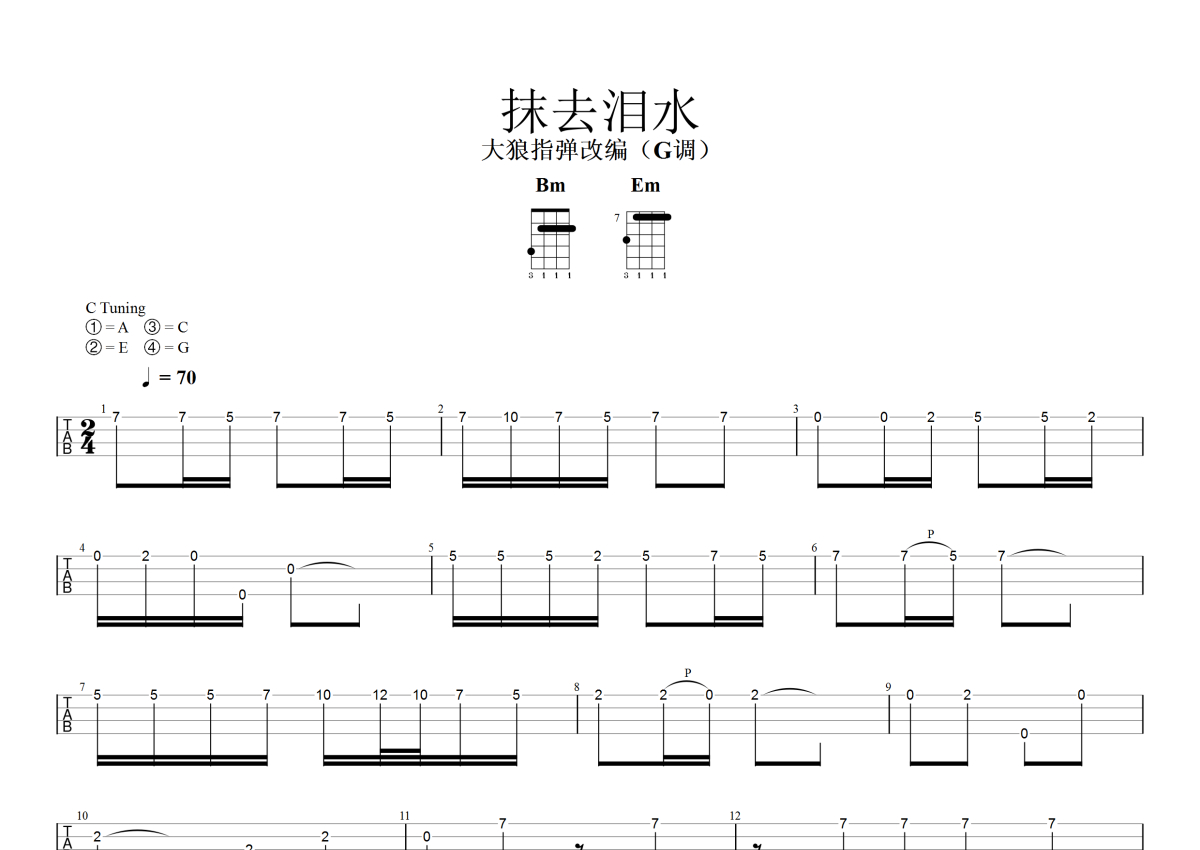 • 抹去泪水尤克里里谱 - 韩宝仪 - 指弹独奏第1张