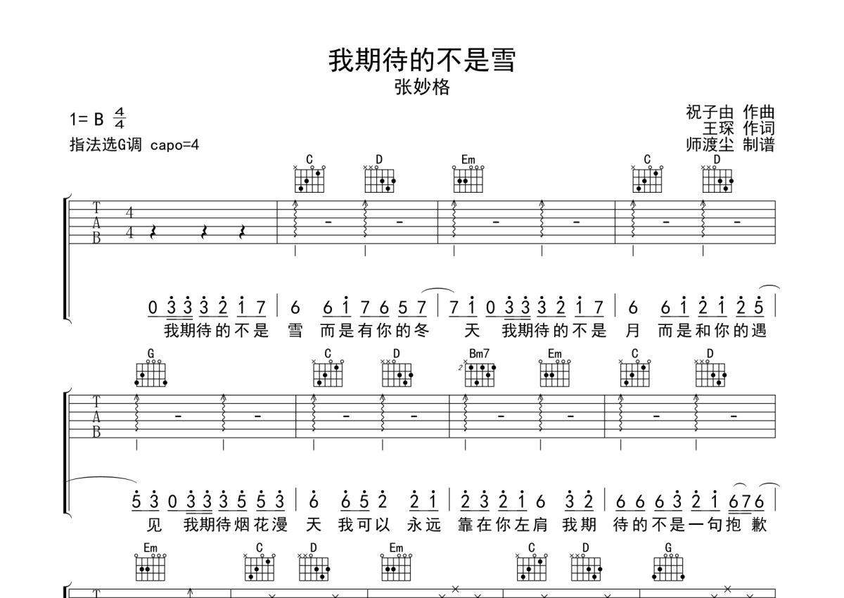 • 我期待的不是雪吉他谱 - 张妙格 - G调吉他弹唱谱第1张
