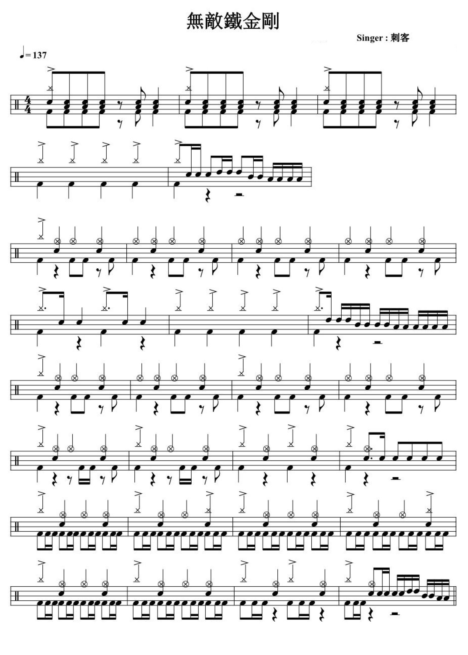 曲谱介绍: 无敌铁金刚(架子鼓谱)