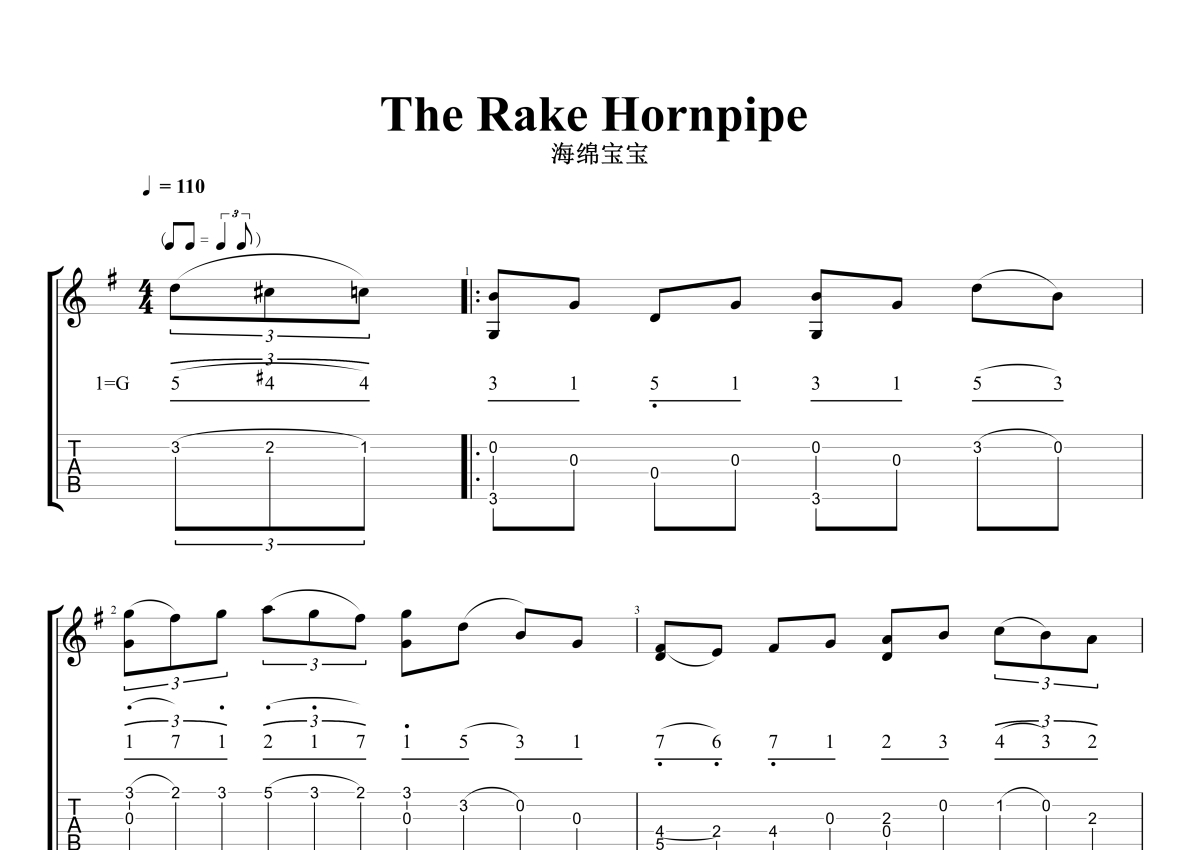 曲谱介绍: 海绵宝宝《TheRakeHornpipe》吉他独奏谱,采用G调指法编配石头音乐原版记谱,石头音乐编配出品,共有4张高清图谱。