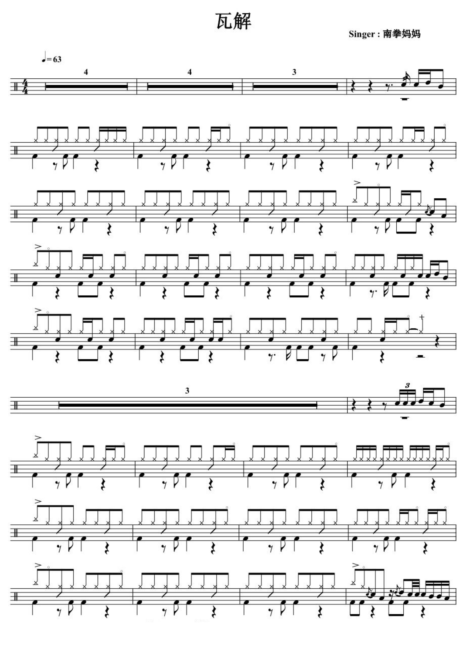 曲谱介绍: 瓦解(架子鼓谱)-南拳妈妈