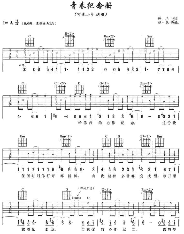 青春纪念册吉他谱 - 可米小子 - G调吉他弹唱谱 - 原版