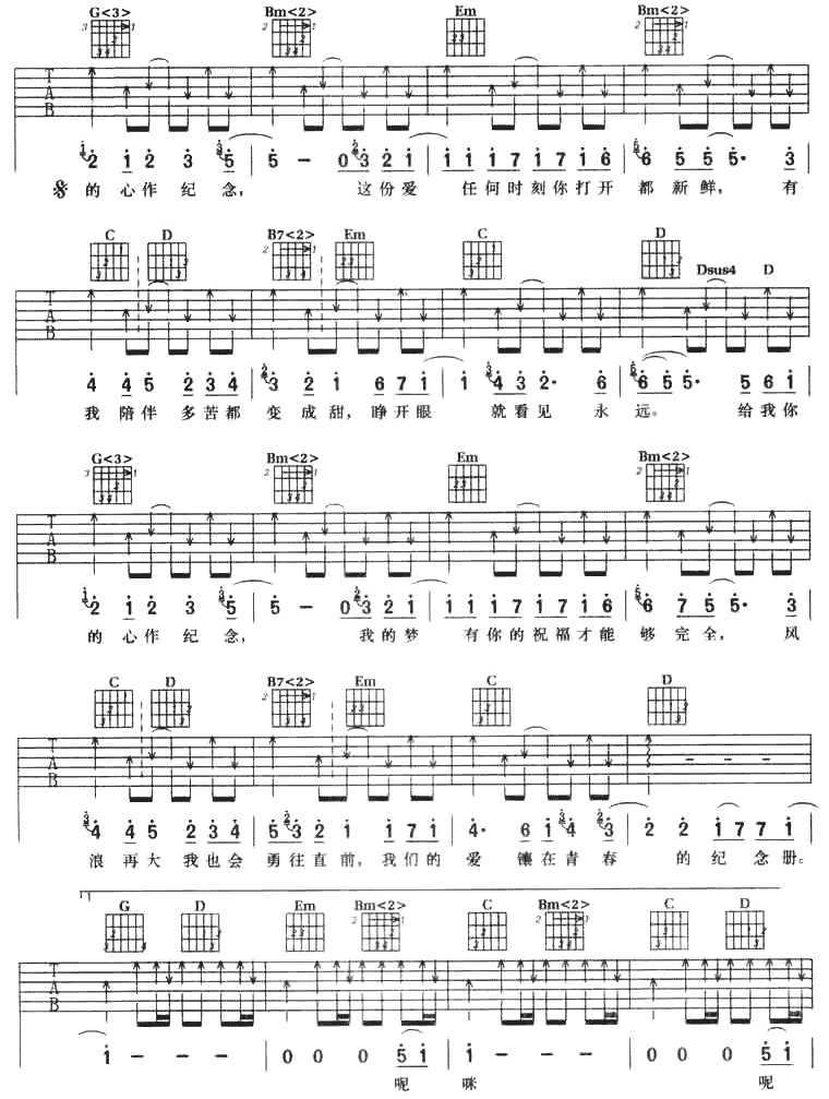 当前位置:琴谱网>吉他弹唱>青春纪念册