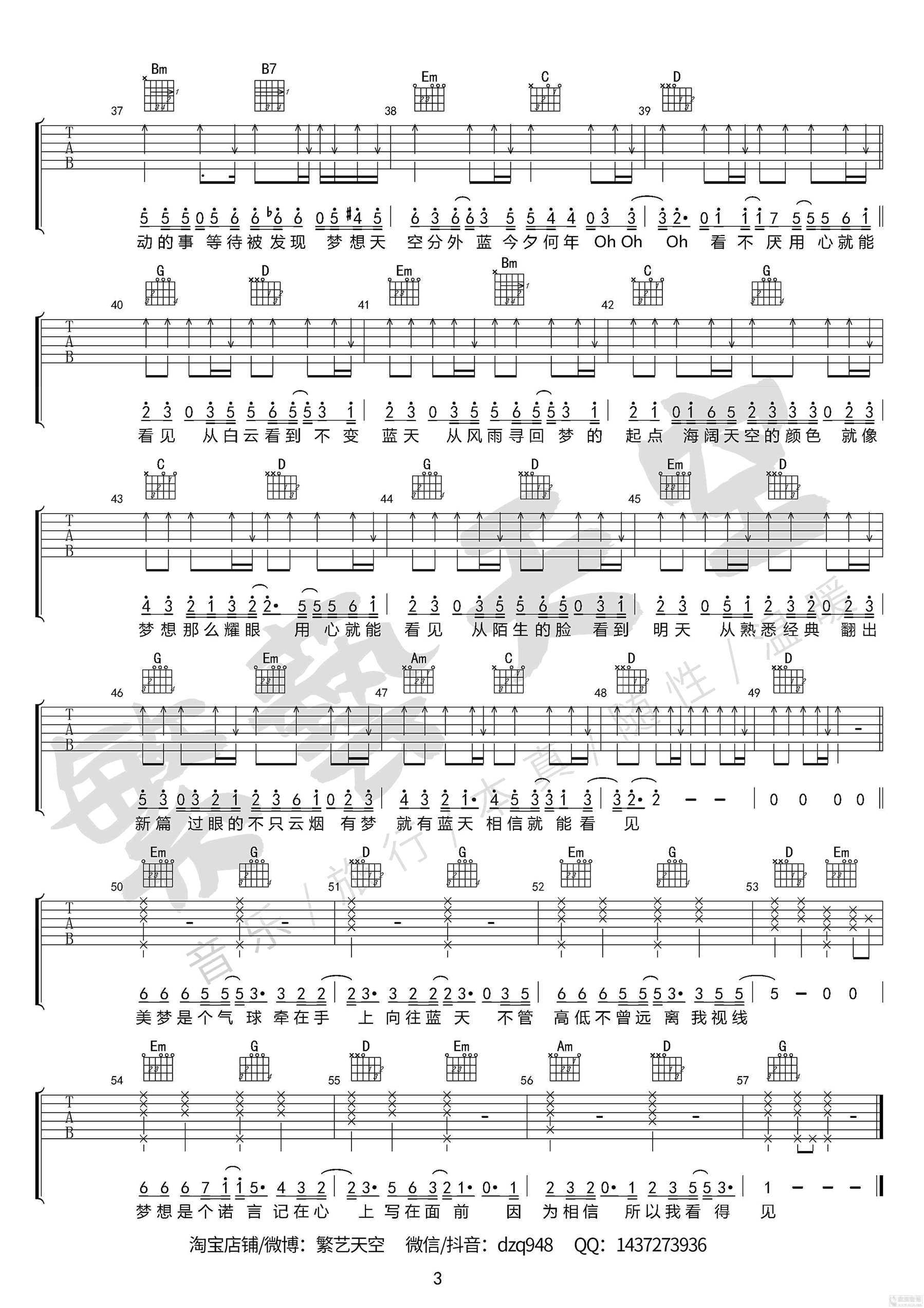 当前位置:琴谱网>吉他弹唱>梦想天空分外蓝