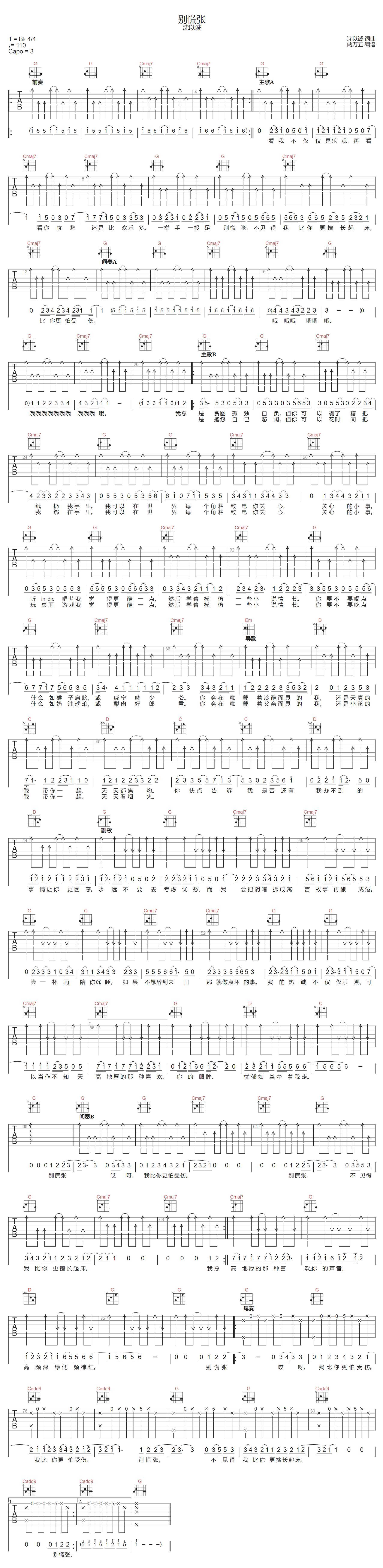 别慌张吉他谱 - 沈以诚 - G调吉他弹唱谱