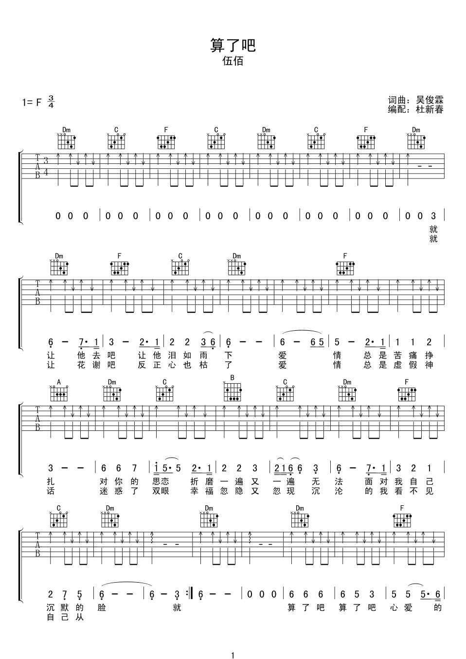算了吧吉他谱 - 伍佰 - F调吉他弹唱谱