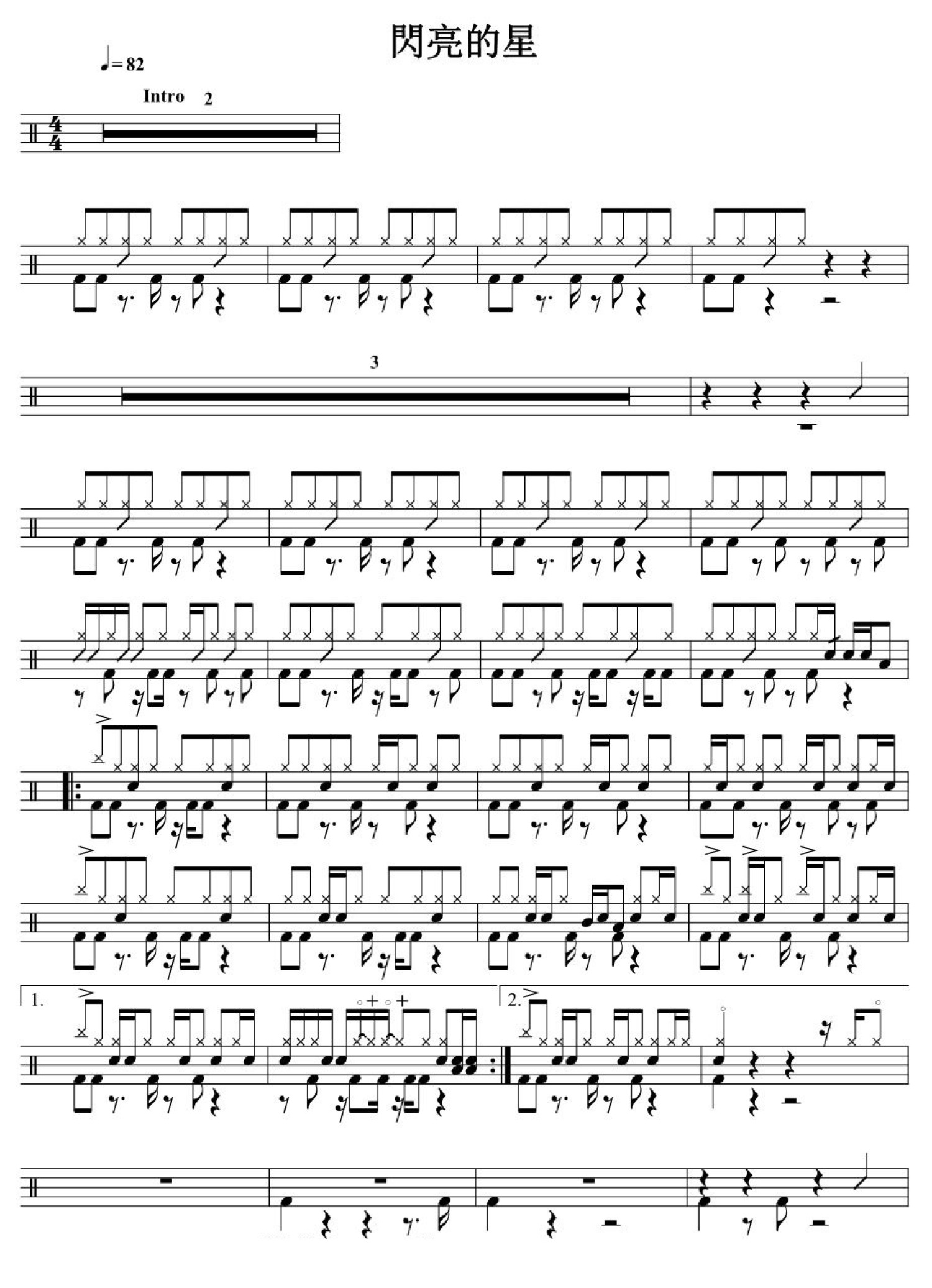 曲谱介绍: 闪亮的星(架子鼓谱)