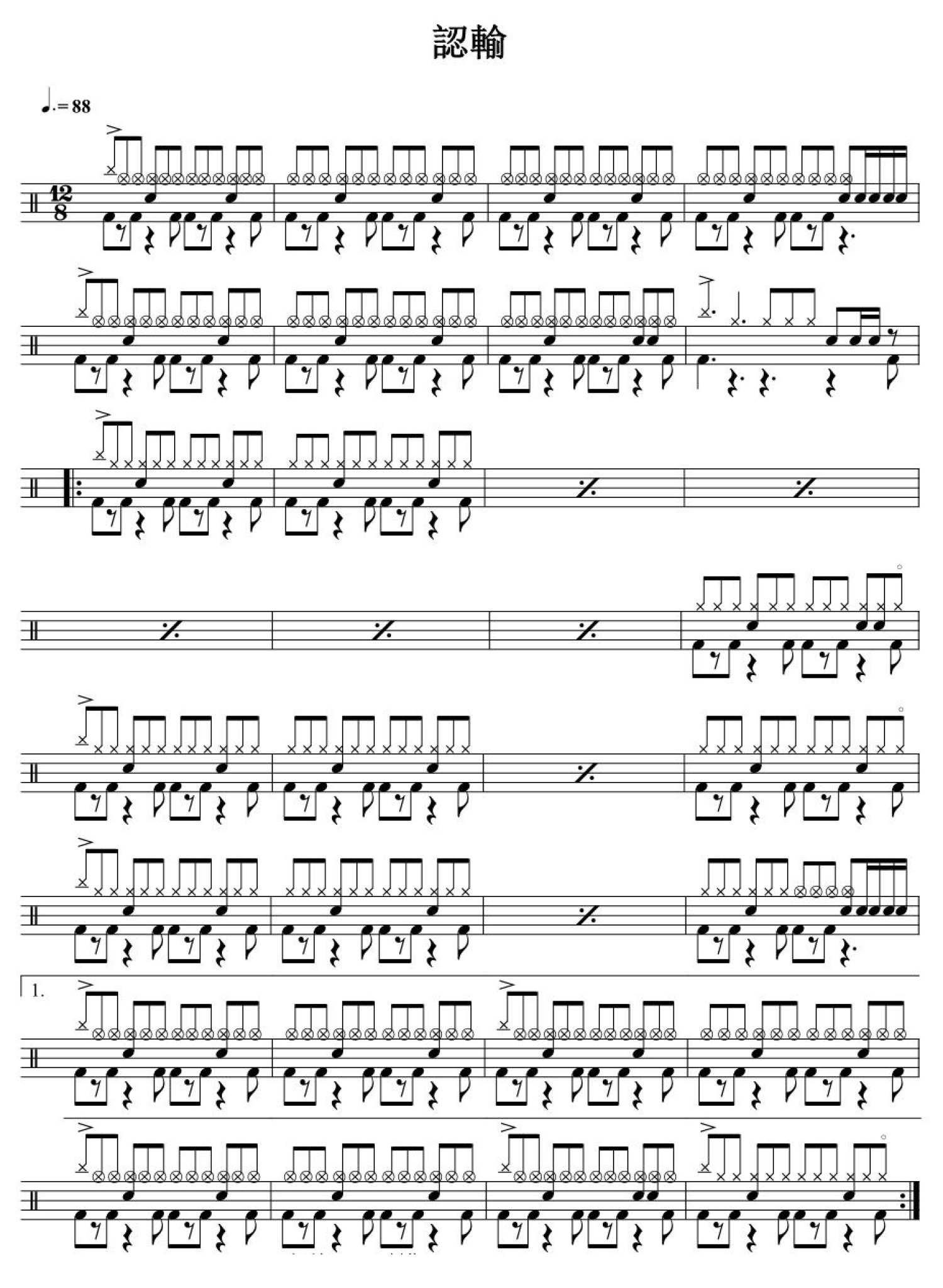曲谱介绍: 认输(架子鼓谱)