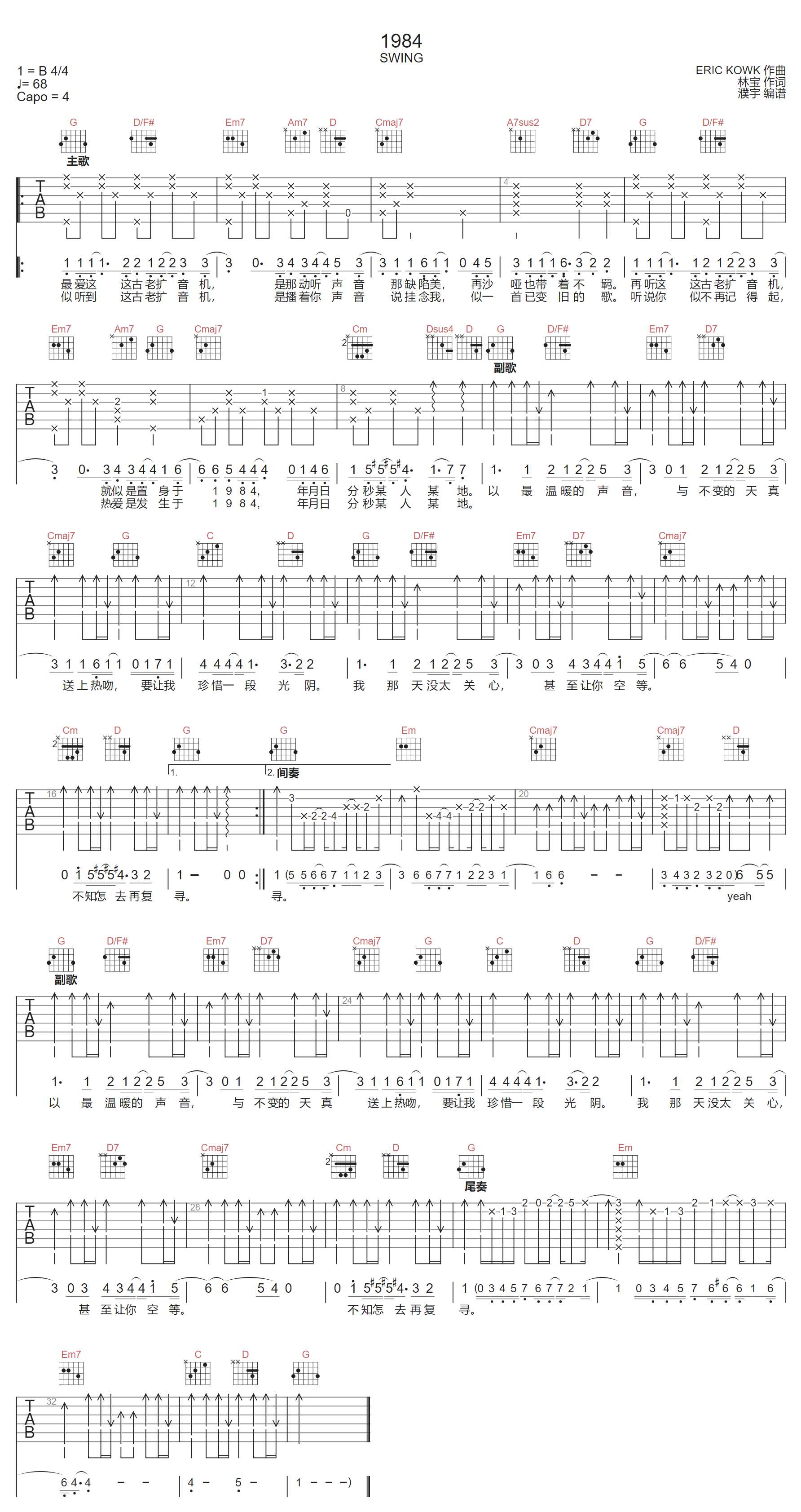 1984吉他谱 - Swing - G调吉他弹唱谱